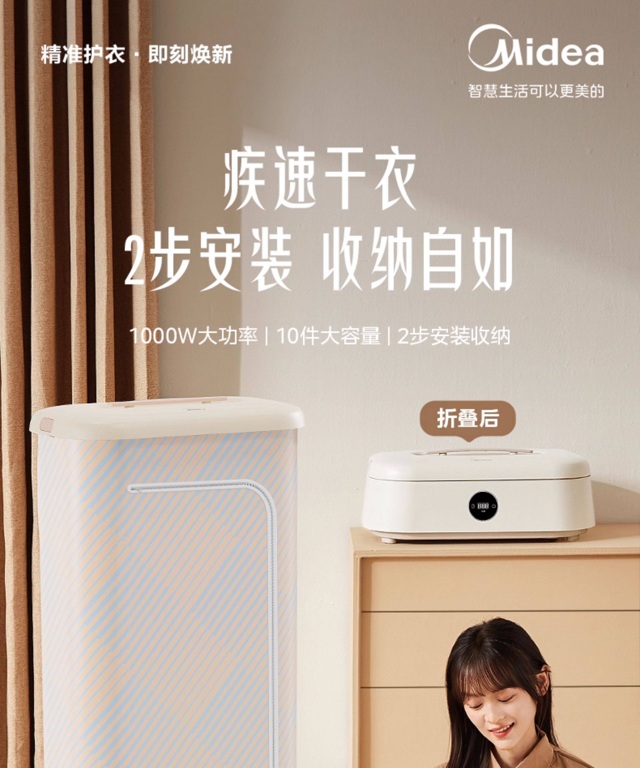 Midea Clothes Dryer for Home Use, Small Fully Automatic Air Dryer, Timed Foldable Dryer, Portable