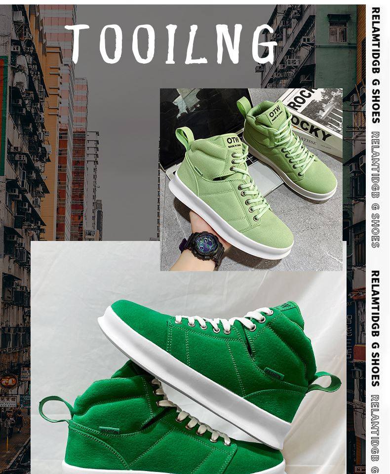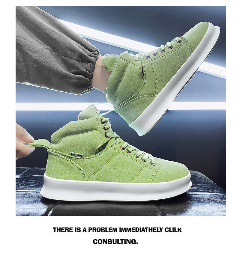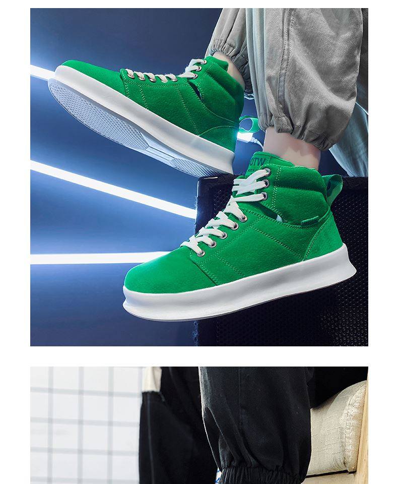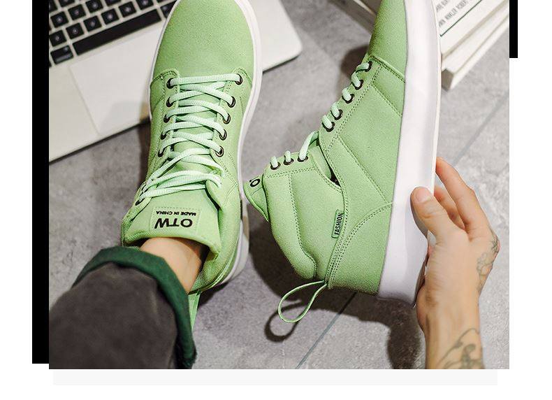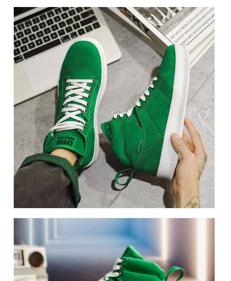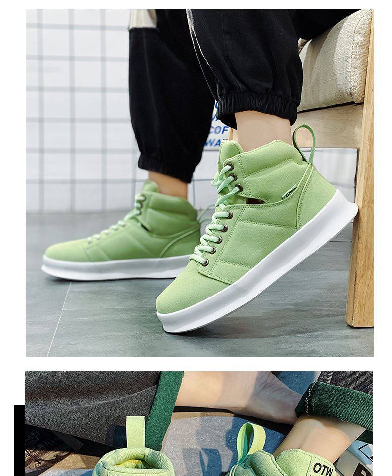 High-Top Men's Sneakers, Autumn 2026 New Model, Height-Increasing Casual Sneakers, Breathable Youth Men's Green Canvas Shoes
