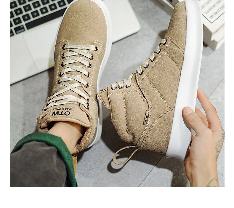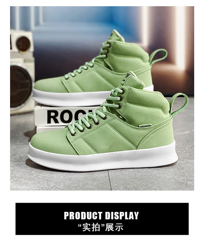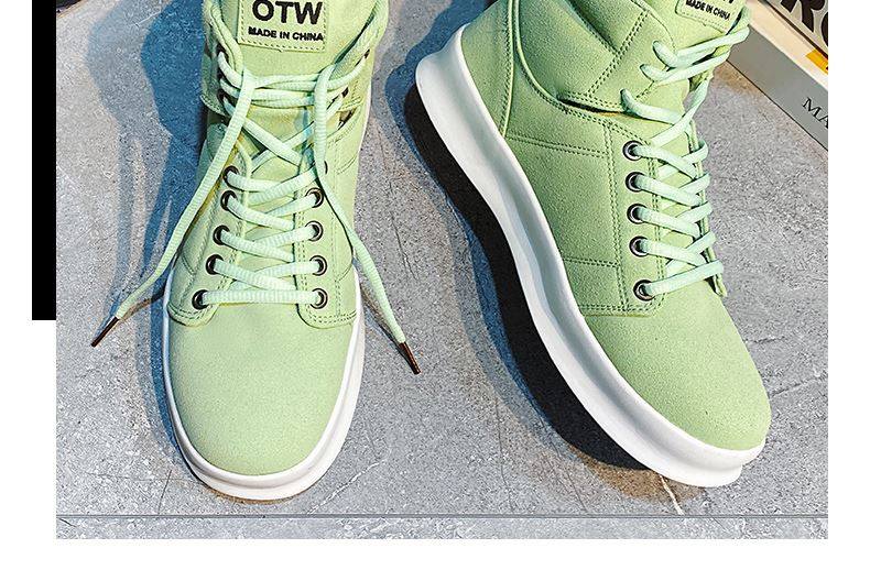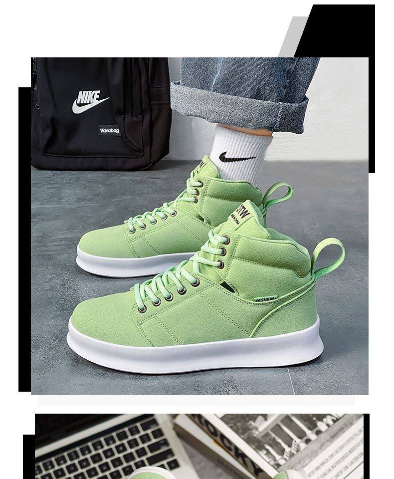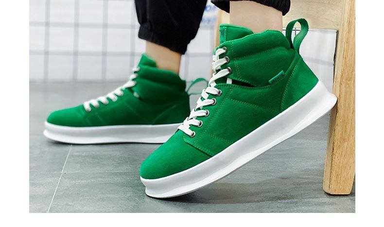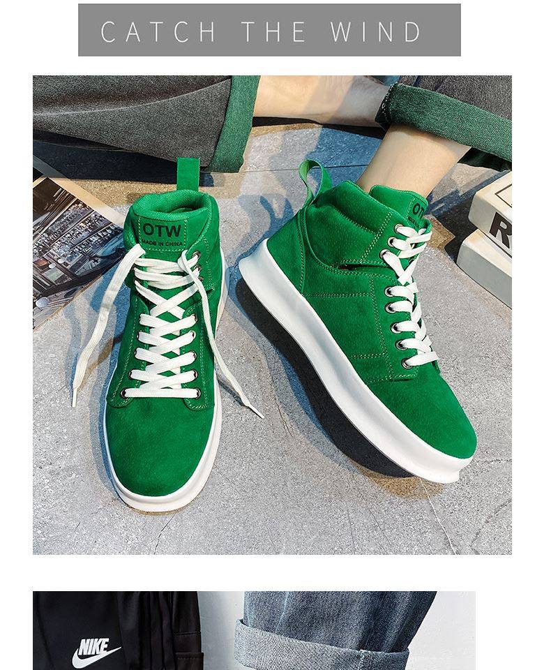 High-Top Men's Sneakers, Autumn 2026 New Model, Height-Increasing Casual Sneakers, Breathable Youth Men's Green Canvas Shoes