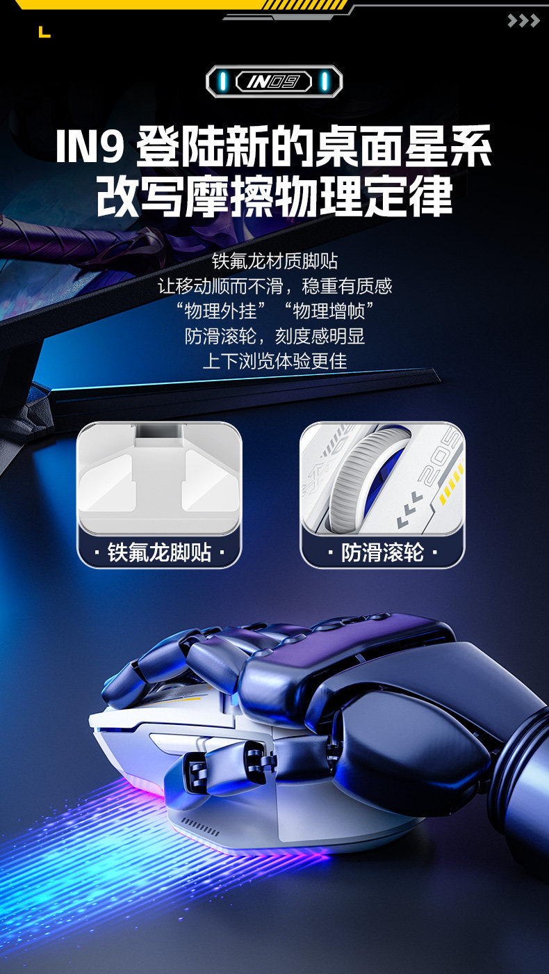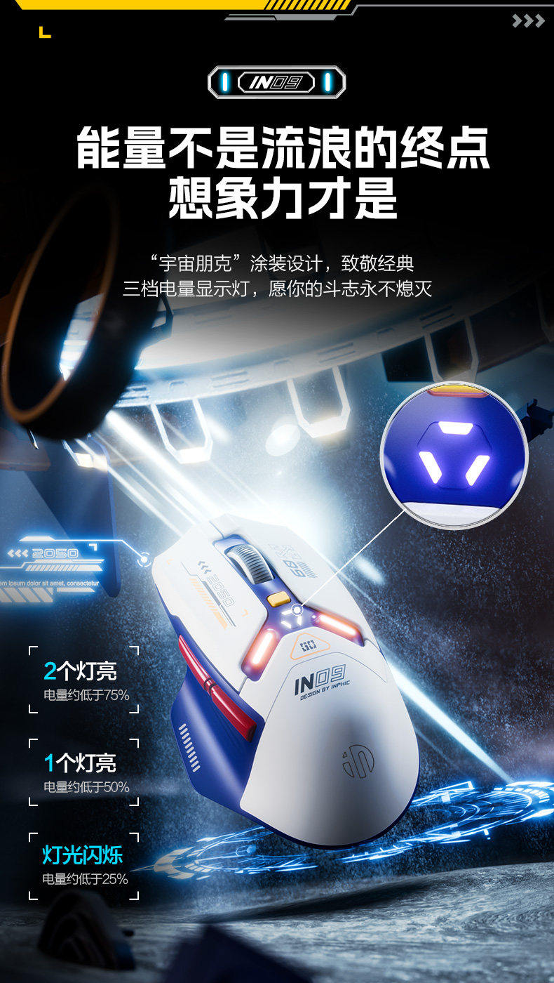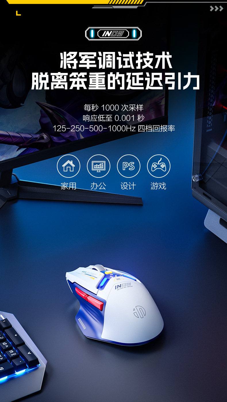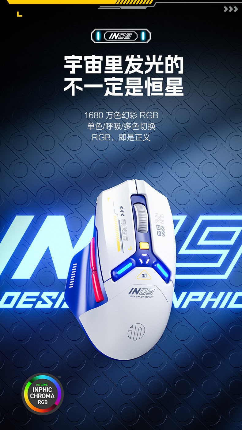 Inphic In9 Wireless Mouse Three-Mode Wired Bluetooth Computer Laptop Type-C Charging Gaming E-Sports Mechanical