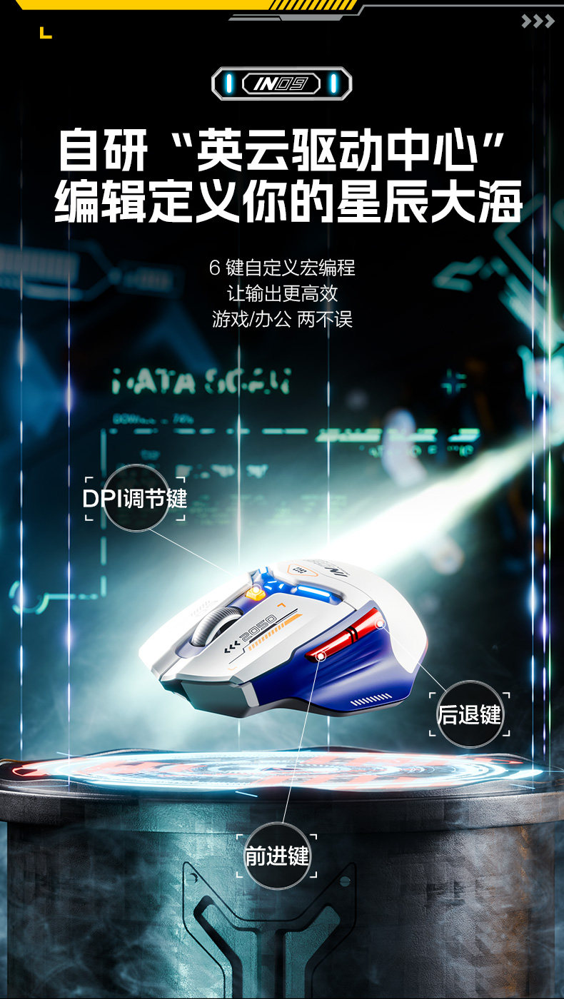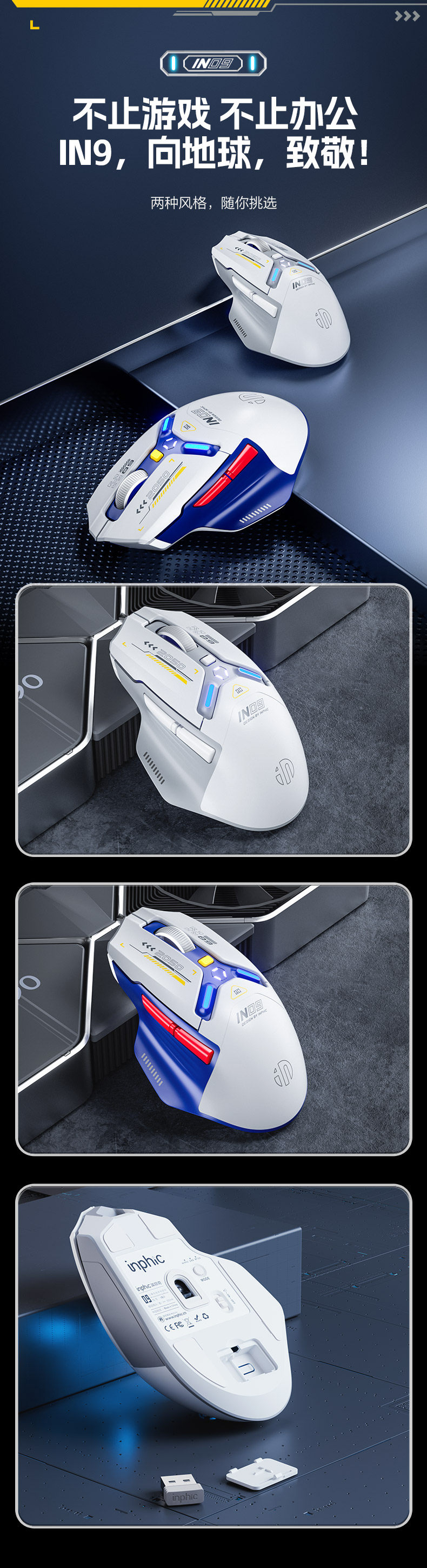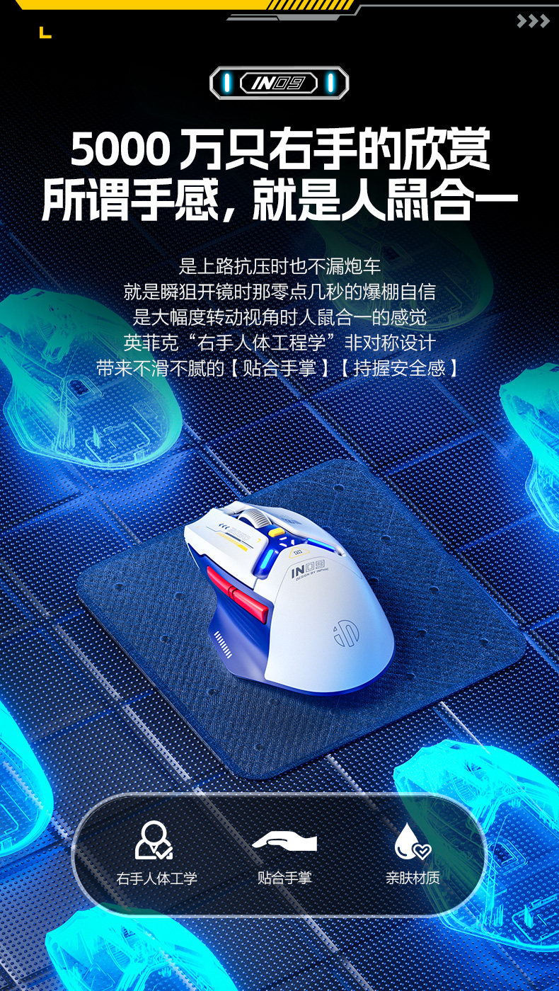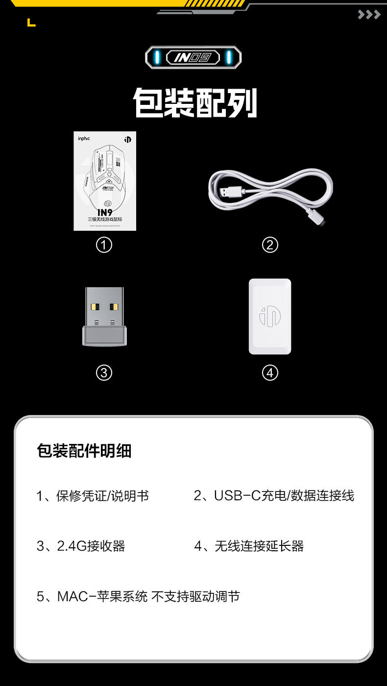 Inphic In9 Wireless Mouse Three-Mode Wired Bluetooth Computer Laptop Type-C Charging Gaming E-Sports Mechanical