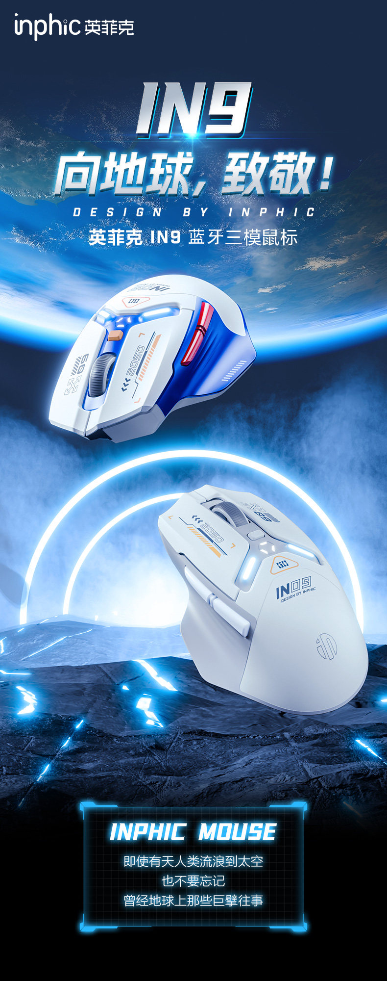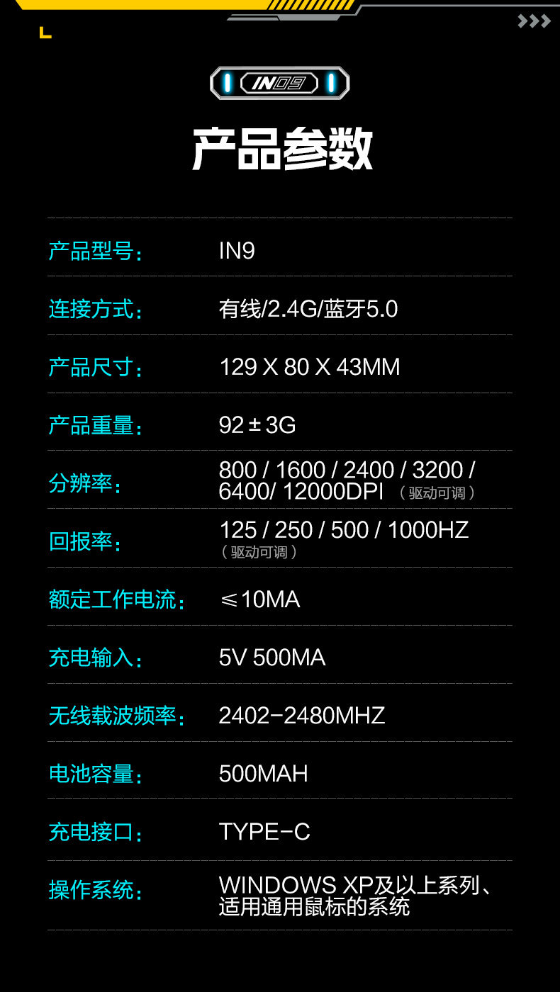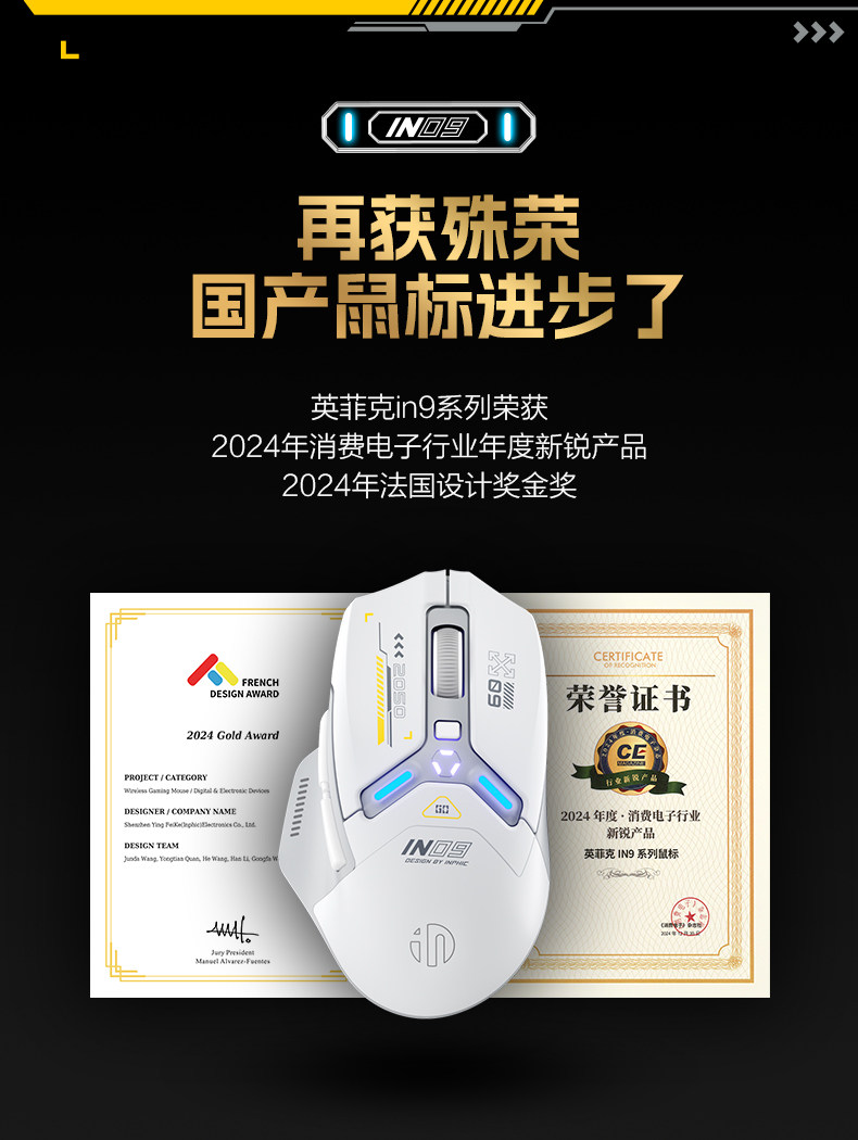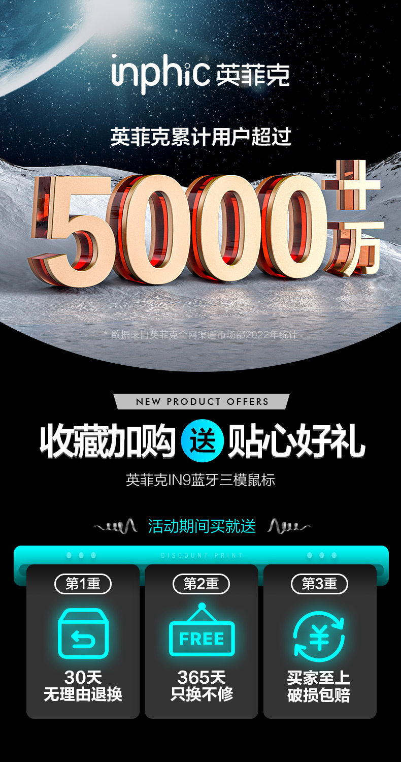 Inphic In9 Wireless Mouse Three-Mode Wired Bluetooth Computer Laptop Type-C Charging Gaming E-Sports Mechanical