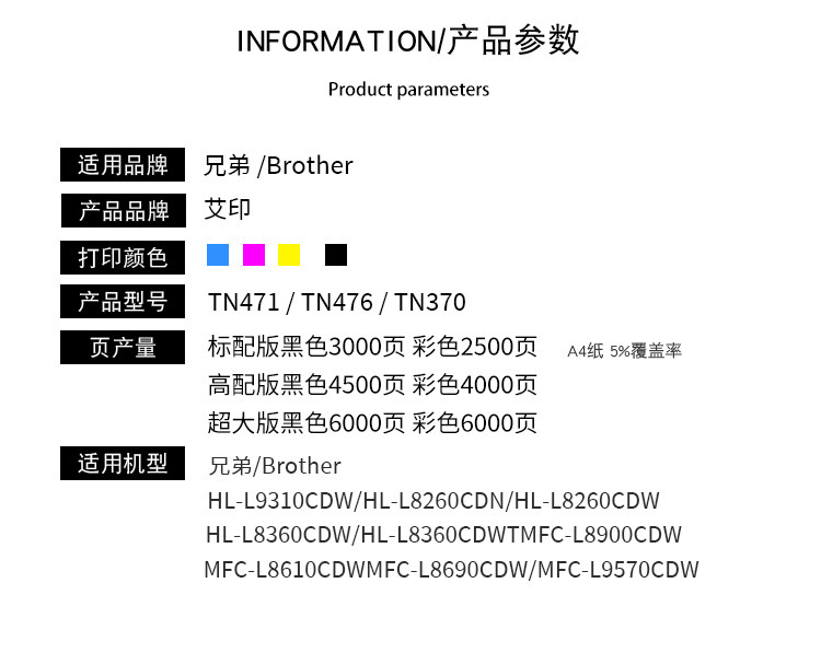 | Model | MFC-L8900cdw HL-L8260cdn L9310cdw L8360cdw L9570 TN471 TN476 TN370 |