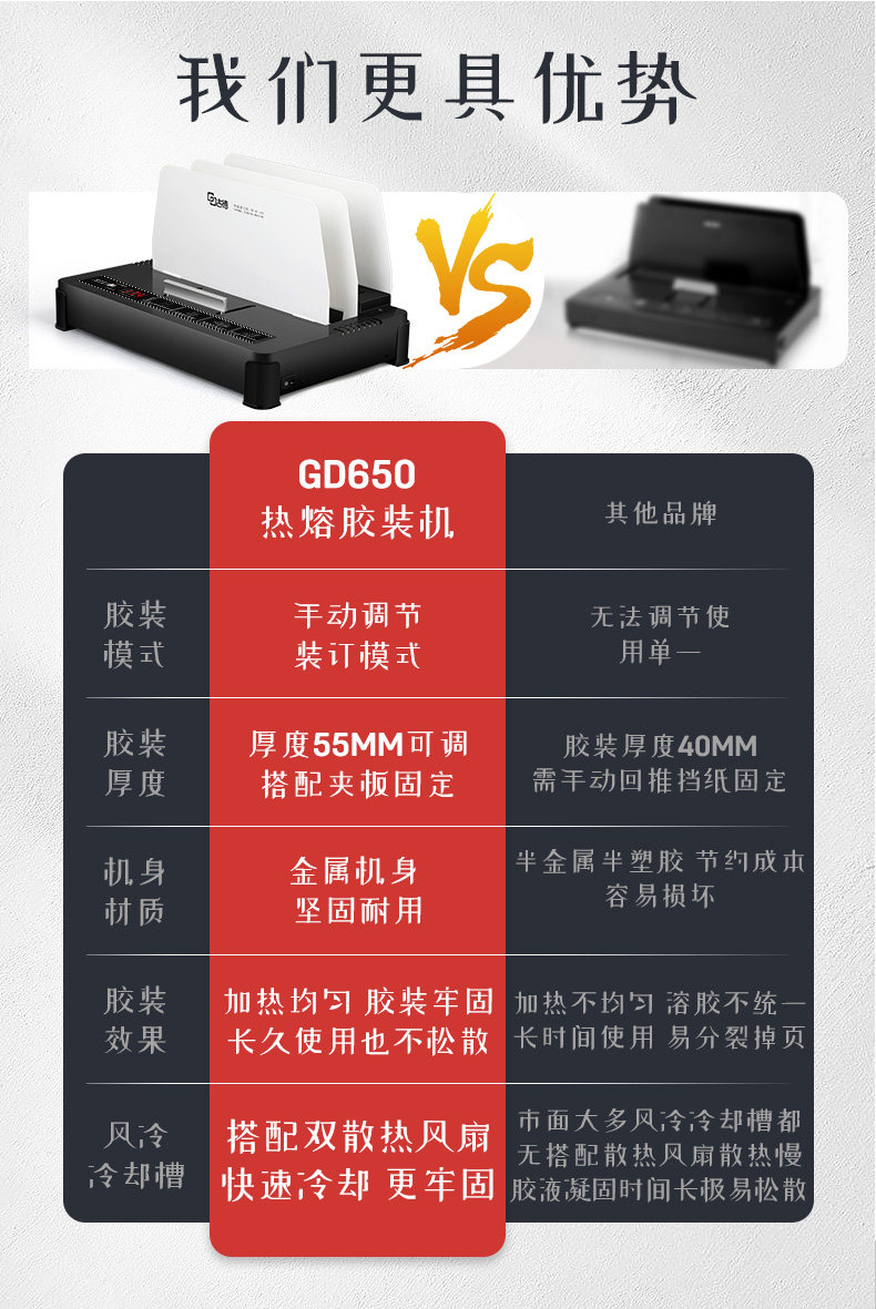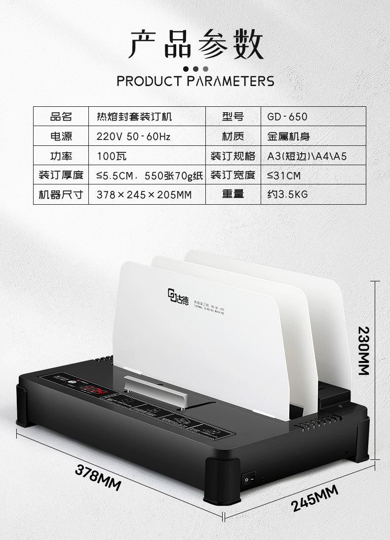 Gude 650 Hot Melt Binding Machine Office Glue Binding Machine Small Document Contract Tender Document Archive Material Voucher A4 Hot Melt Cover Electric Punch Book Hot Melt Glue Book Automatic Fully Automatic