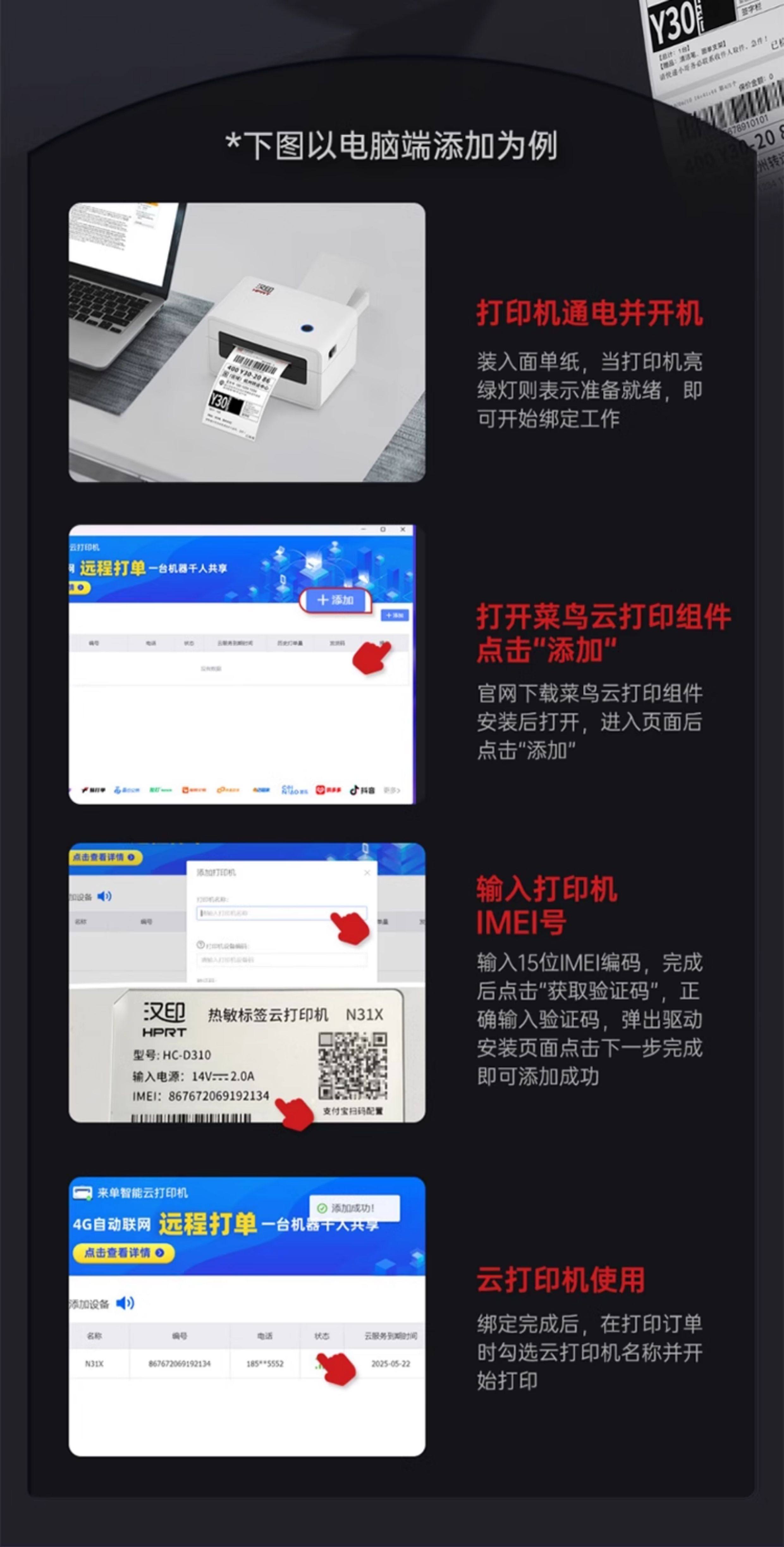 Hanyin Printer N31X Cainiao 4g Cloud Printer Remote Cloud Printing Machine for Qianiu Computers and Mobile Phones, Universal for E-Commerce Sellers, Thermal Express Delivery Label Printer, Dedicated for Express Delivery