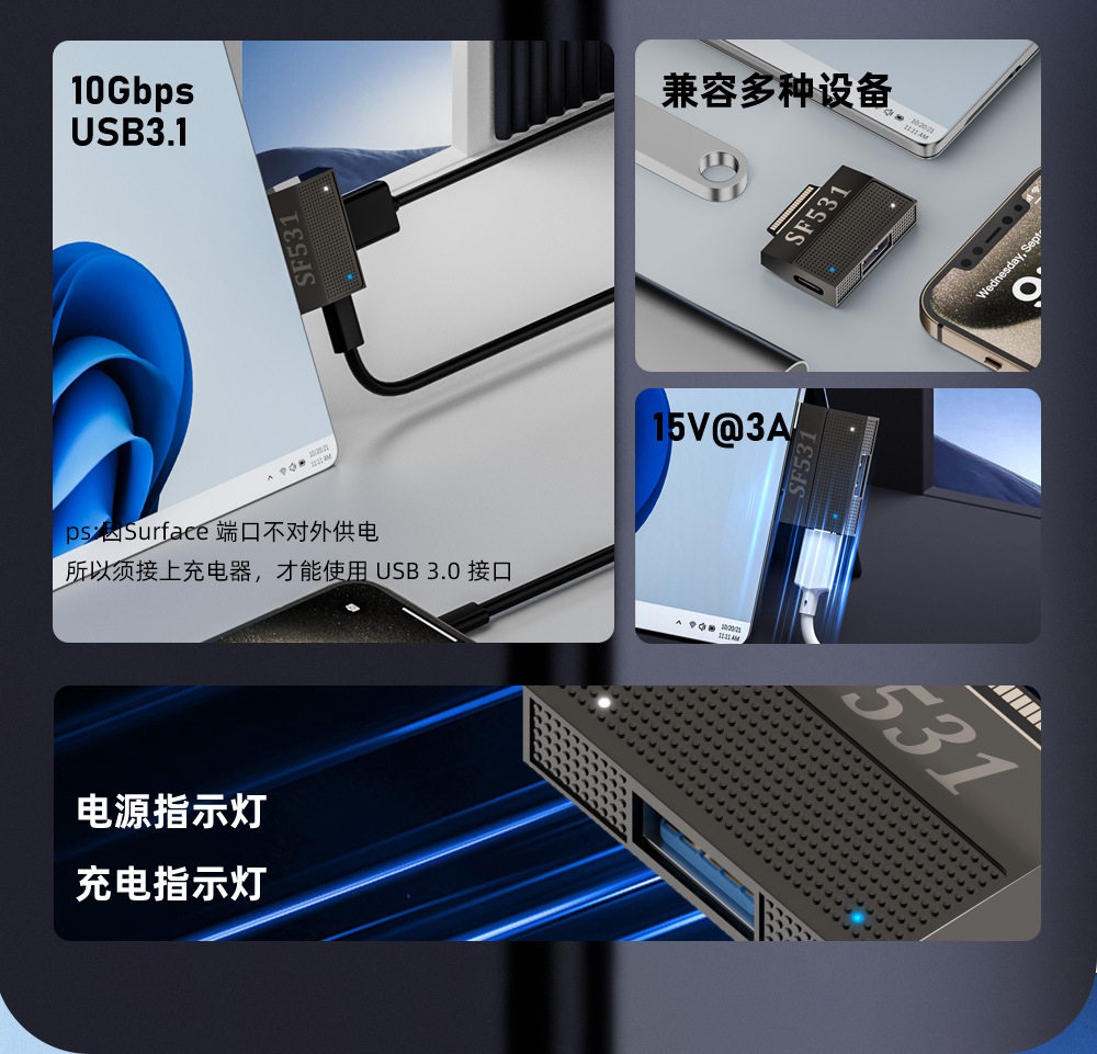 Suitable for Microsoft Surface to USB External Hard Drive Adapter Pd Charger Tablet Pro4 Computer Surfacego2 to Typec Laptop Book Magnetic Fast Charging 40Pin Adapter