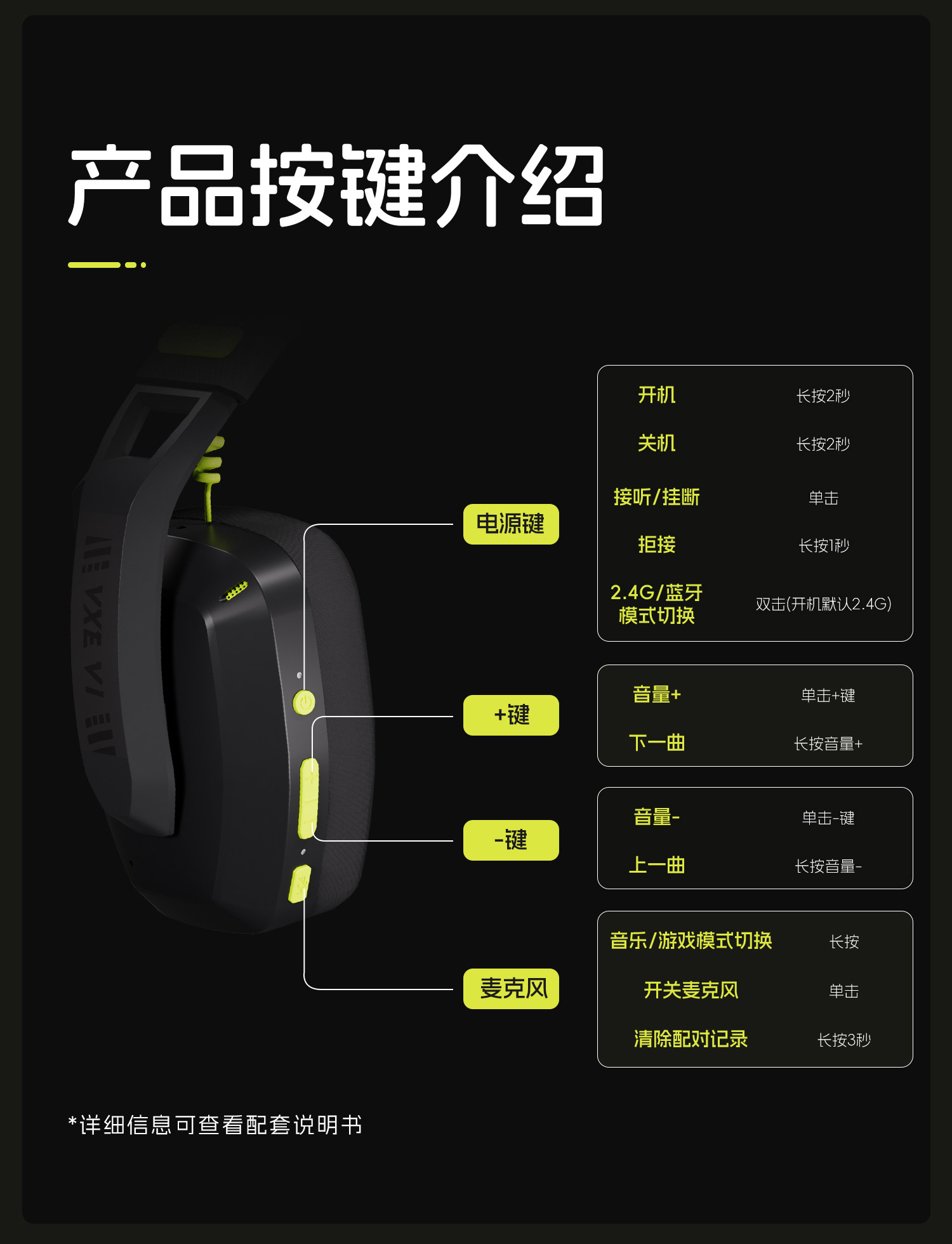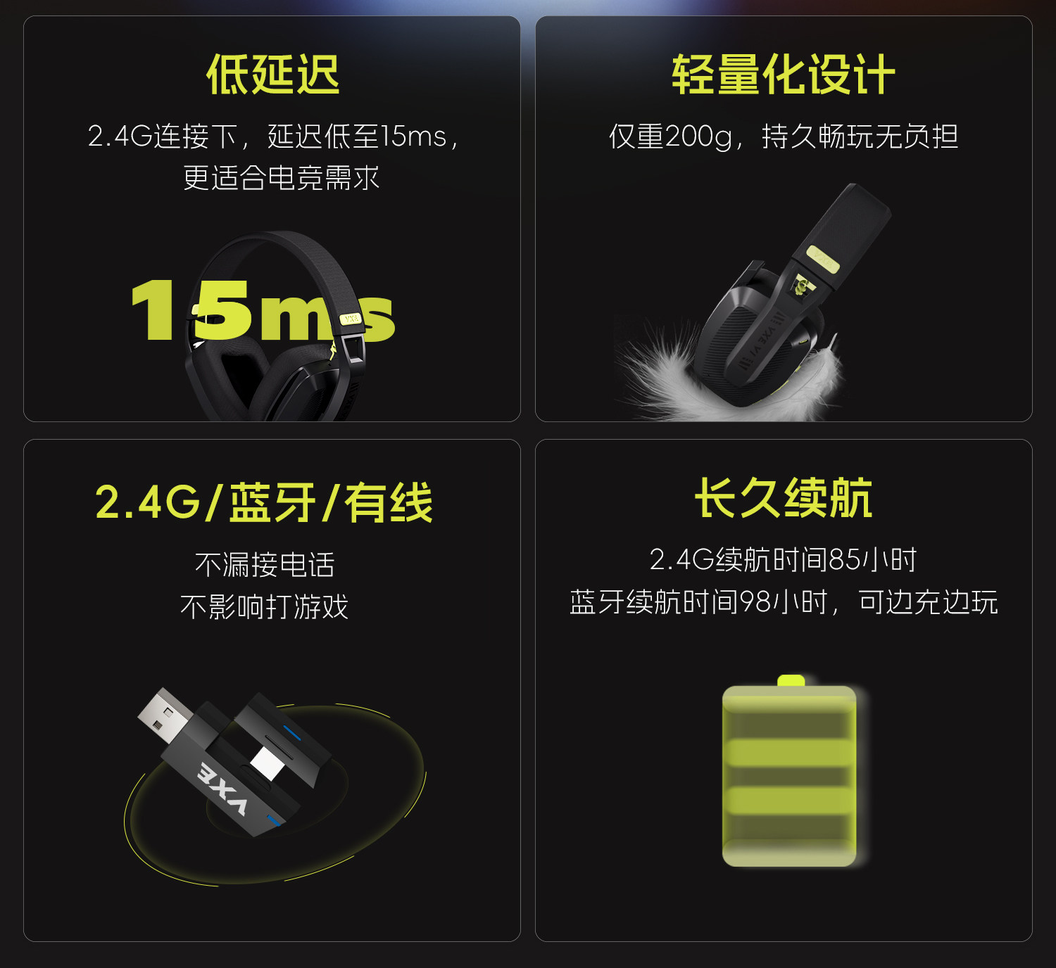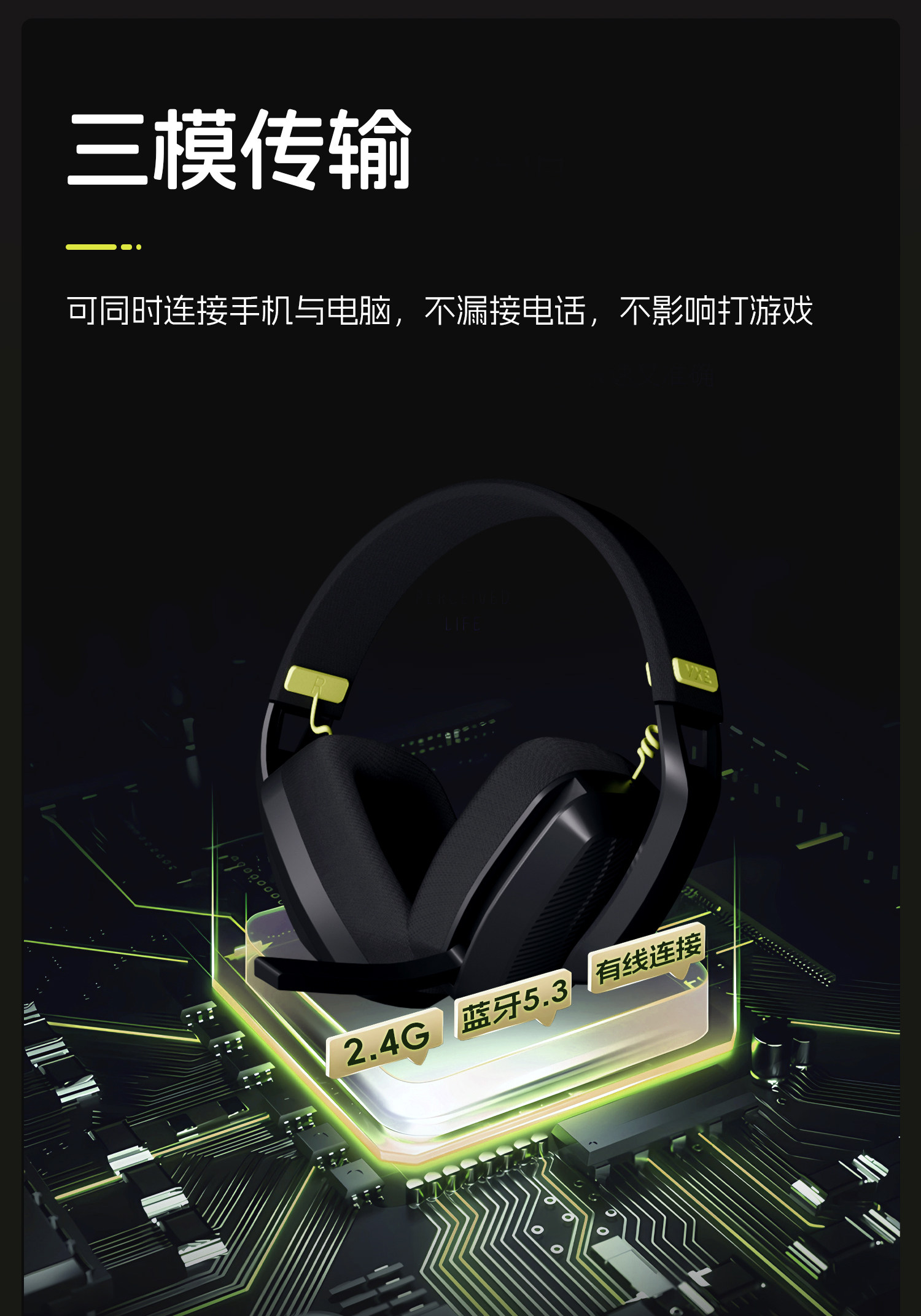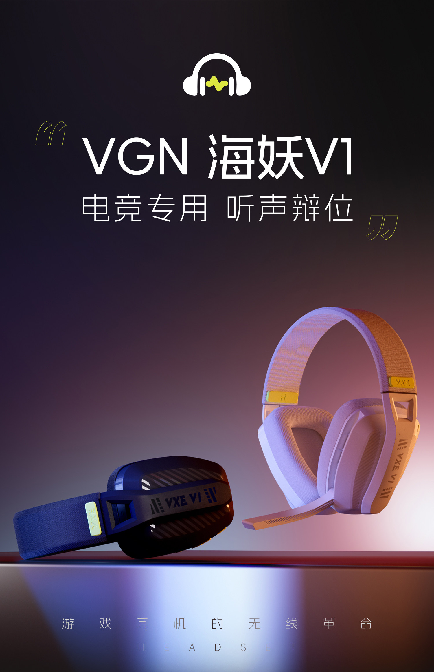 Vgn Siren V1 Bluetooth 2.4g Three-Mode Lightweight Head-Mounted Gaming Headset with Microphone for Computer E-Sports Games