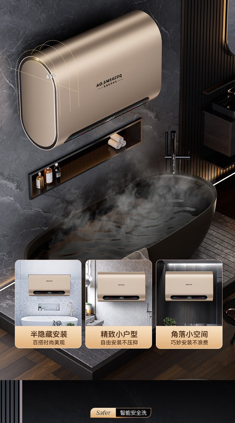 New Ao Water Heater, Electric, Household, Storage Type, 60 Liters, 80 Liters, Bathroom, Shower, Fast Heating, Energy-Saving, Official Store, First-Class