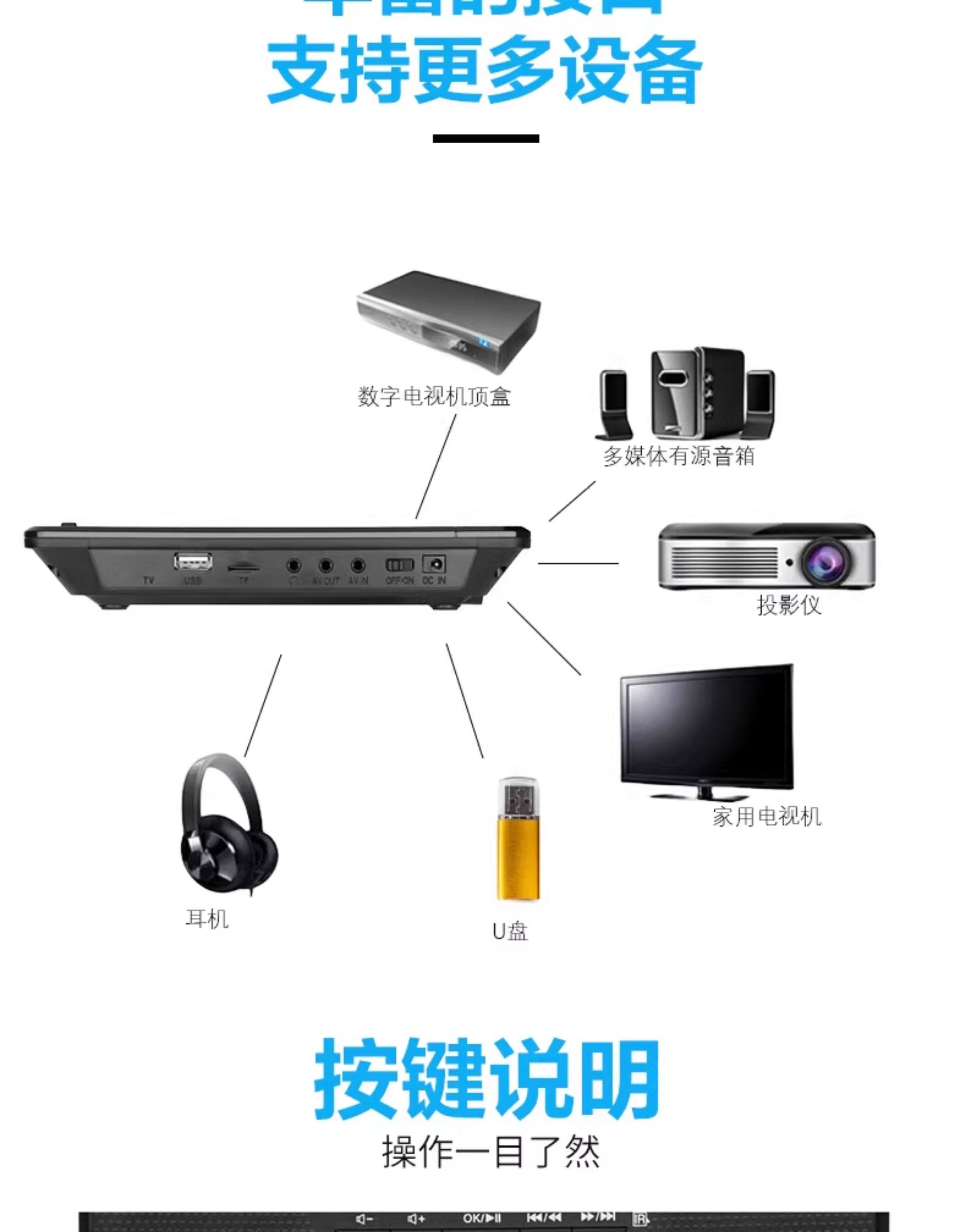 New Product, Full-Format Portable Multi-Functional Mobile Vcd Home Dvd Player, Small All-In-One Music and Video Player