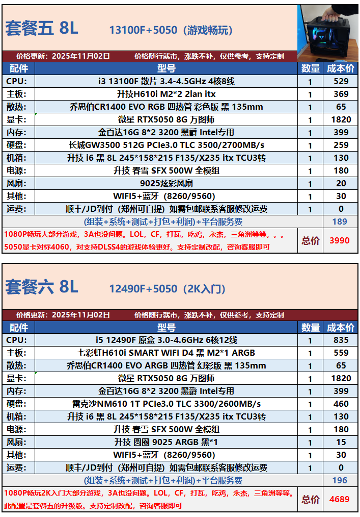 [04]8-Liter Itx Classic Configuration Recommendation/Mini Computer Small Host for Gaming, E-Sports, Office, Portable DIY