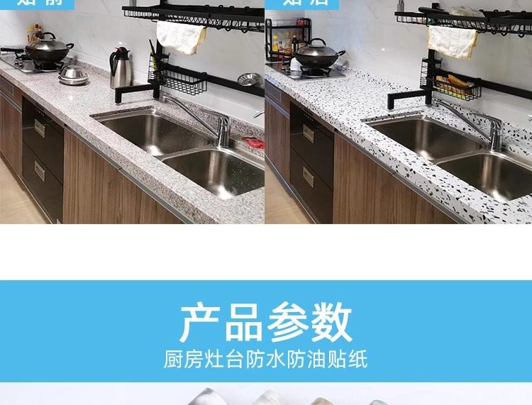 Kitchen Countertop Protective Mat, Oil-Proof Sticker, Thickened Marble Pattern Self-Adhesive, Waterproof, High Temperature Resistant, No Glue Left Behind