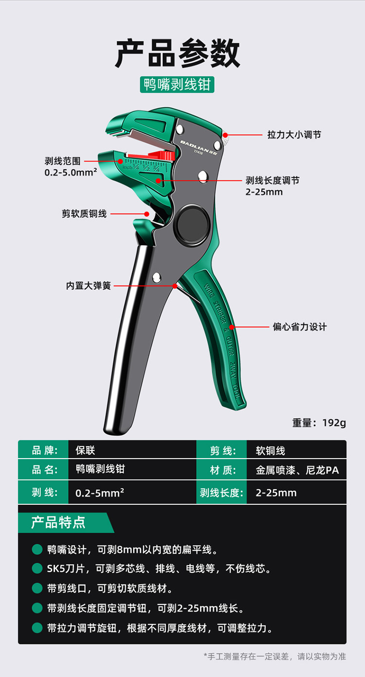 | Color Classification | Duckbill Wire Stripper[1 Handful],Duckbill Wire Stripper[2 Handfuls],Duckbill Wire Stripper + 9m Tape,Duckbill Wire Stripper + 6inch Yaobei Wire Stripper,Duckbill Wire Stripping Pliers + Waterproof Storage Bag,Duckbill Wire Stripping Pliers + 5inch Nozzle Pliers (Can Cut Steel Wire) |