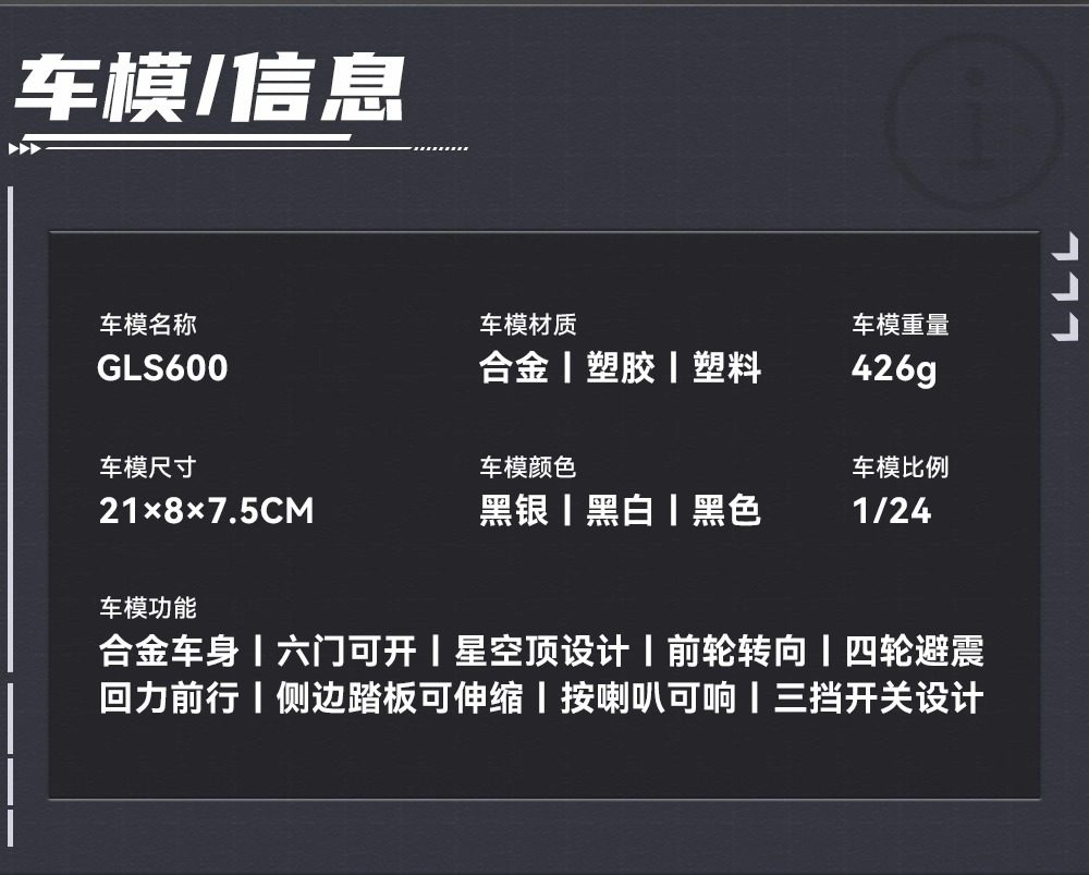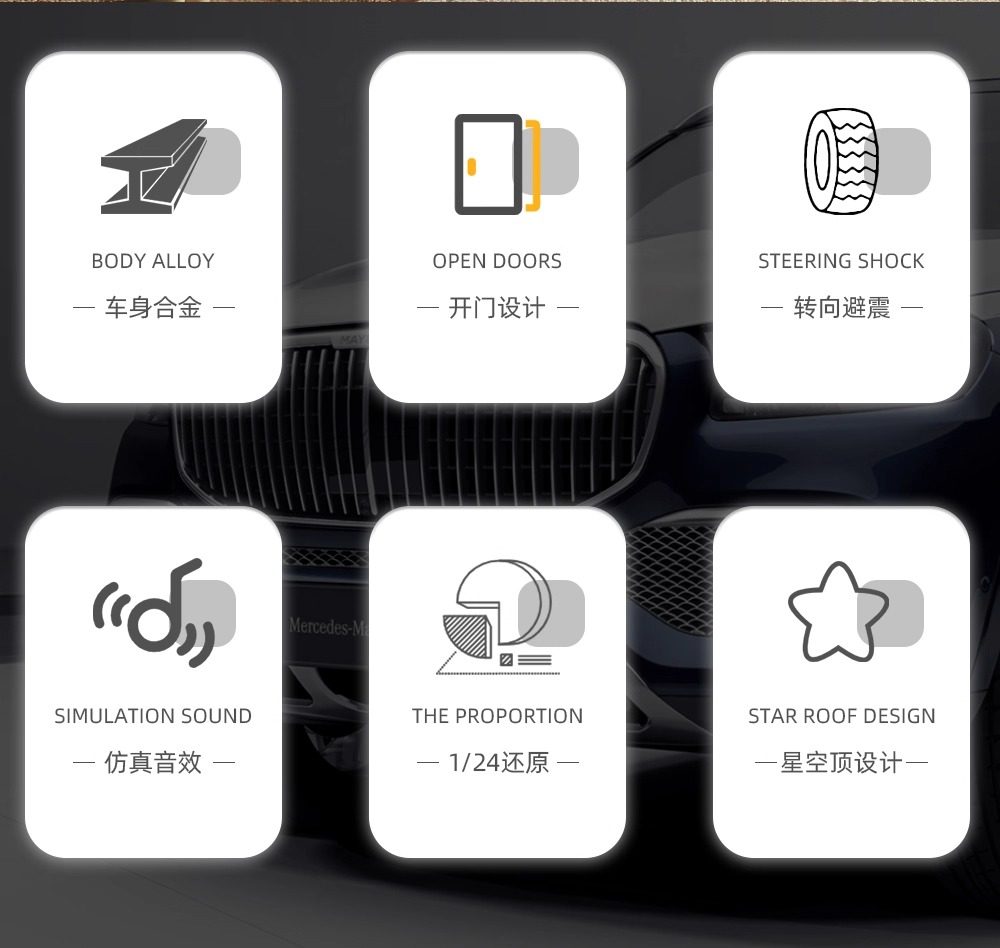 | Color Classification | 1:24 Maybach Gls600[Black],1:24 Maybach Gls600[Black and White],1:24 Maybach Gls600[Black Silver],1:24 Maybach S600[Black],1:24 Maybach S600[Red],1:24 Maybach 62S[Black Gold],1:24 Maybach 62S[Black Gray],1:32 Maybach S Extended Edition[Black],1:32 Maybach S Extended Edition[White],1:32 Maybach S Extended Edition[Gold],1:32 Maybach S650[Black and White],1:32 Maybach S650[Silver Black],1:32 Maybach S650[White],1:32 Maybach S650[Black],1:24 Maybach S680[Silver Black],1:24 Maybach S680[Black and White],1:24 Maybach S680[Rose Gold],1:24 Maybach S680 Swat,1:24 Maybach S680 American Police Car,1:24 Maybach S680[White],1:24Mercedes-Benz E300[Black],1:24Mercedes-Benz E300[White],1:32 Mercedes-Benz Glc[Black],1:32 Mercedes-Benz Glc[White] |