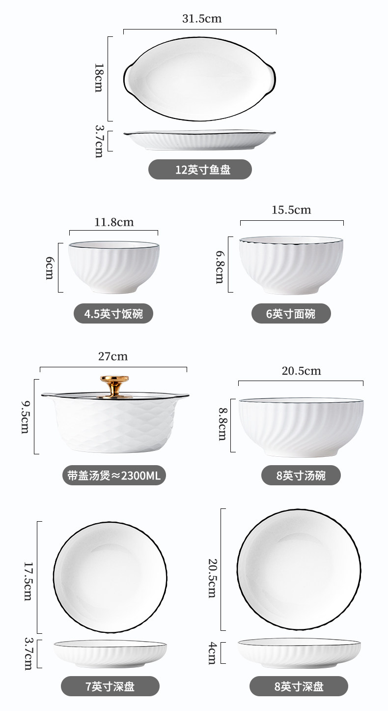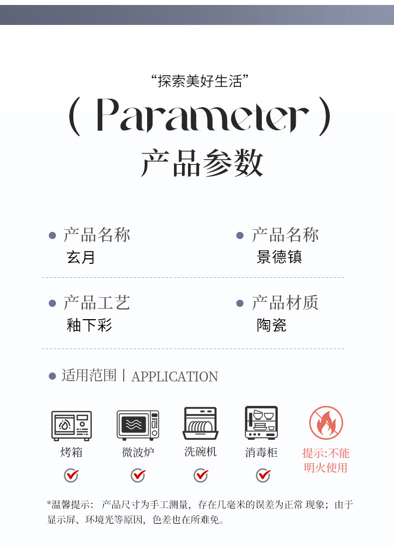 | Color Classification | Xuanyue 26-Piece Set for 4 People with Soup Bowl,Xuanyue 33-Piece Set for 6 People with Soup Bowl,Xuanyue 33-Piece Set for 6 People with Diamond Pot,Xuanyue 8-Person Meal 41-Piece Set with Soup Bowl,Xuanyue 41-Piece Set for 8 People with Diamond Pot,Xuanyue 47-Piece Set for 10 People with Soup Bowl,Xuanyue 47-Piece Set for 10 People with Diamond Pot,Xuanyue 12-Person Meal 63-Piece Set with Diamond Pot,High-Temperature Underglaze Process Is Safe and Healthy.,If You Need a Color Box, Please Contact Customer Service for Notes. |