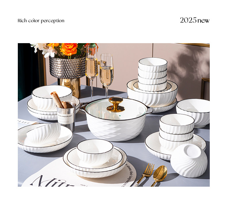 Underglaze Color Tableware High-End Bowl and Plate Set Household Bowl and Plate Combination Housewarming 2025 New Ceramic Tableware Set
