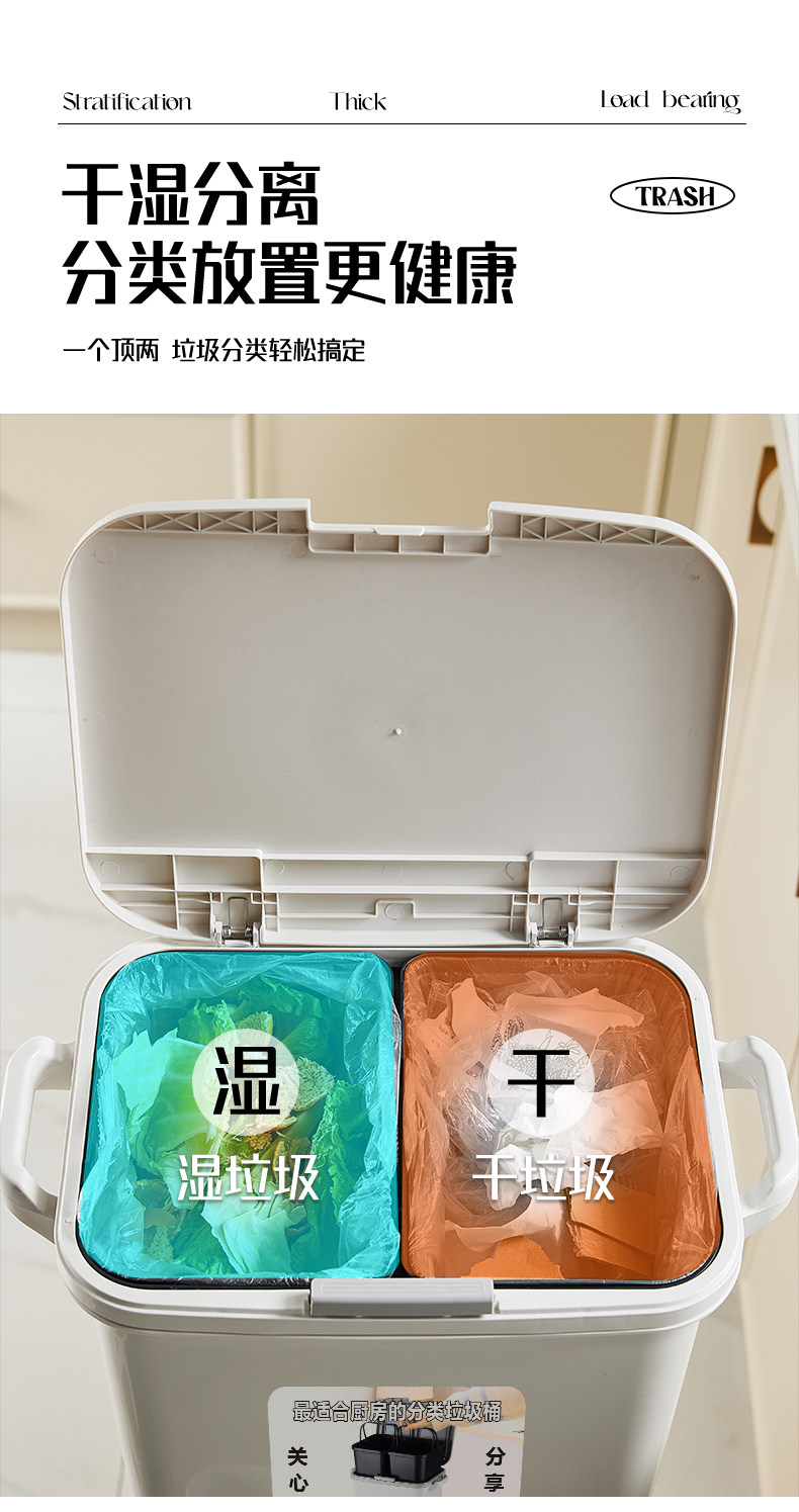 Aishike Kitchen Trash Can with Lid, Household 2026 New Model, Double-Layer Large Capacity, Dry and Wet Separation, Kitchen Waste Classification
