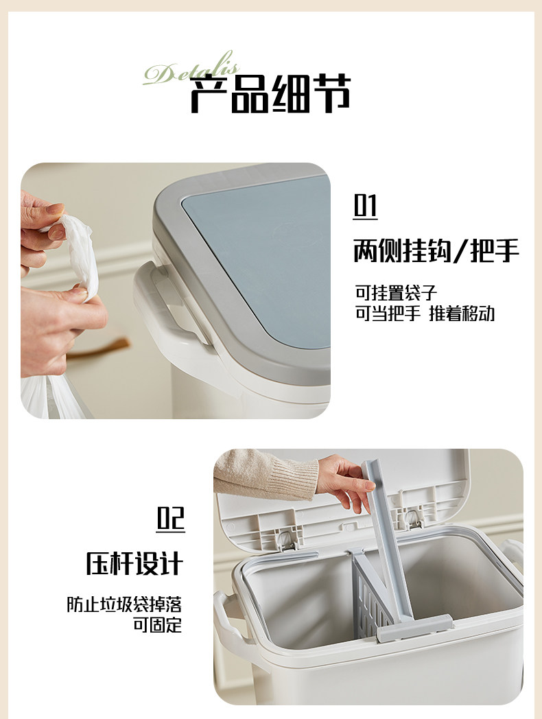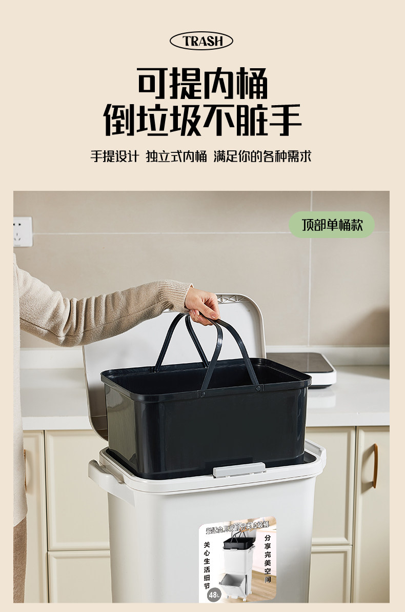 | Color Classification | Single Lid Standard - Two-Tier 34L[Pedal + Fixed Universal Wheel],Single Lid Standard - Three-Layer 37L[Foot Pedal + Drawer + Fixed Universal Wheel],Single Lid, Single Inner Bucket - Two-Tier 34L[Pedal + Fixed Universal Wheel],Single Lid, Single Inner Bucket - Three-Layer 37L[Foot Pedal + Drawer + Fixed Universal Wheel],Single Lid, Double Inner Bucket - Two-Tier 34L[Pedal + Fixed Universal Wheel],Single Lid, Double Inner Bucket - Three-Layer 37L[Foot Pedal + Drawer + Fixed Universal Wheel],Double Lid and Double Inner Barrel - Second Floor 34L[Pedal + Fixed Universal Wheel],Double Lid and Double Inner Barrel-Three Layers 37L[Foot Pedal + Drawer + Fixed Universal Wheel],Single Lid Standard - Two-Tier 45L[Pedal + Fixed Universal Wheel],Single Lid Standard - Three-Layer 49L[Foot Pedal + Drawer + Fixed Universal Wheel],Single Lid, Single Inner Bucket - Two-Tier 45L[Pedal + Fixed Universal Wheel],Single Lid, Single Inner Bucket - Three-Layer 49L[Foot Pedal + Drawer + Fixed Universal Wheel],Single Lid, Double Inner Bucket - Two-Tier 45L[Pedal + Fixed Universal Wheel],Single Lid, Double Inner Bucket - Three-Layer 49L[Foot Pedal + Drawer + Fixed Universal Wheel],Double Cover and Double Inner Barrel - Second Floor 45L[Pedal + Fixed Universal Wheel],Double Lid and Double Inner Barrel-Three Layers 49L[Foot Pedal + Drawer + Fixed Universal Wheel],Single Lid Standard - Two-Tier 48L[Pedal + Fixed Universal Wheel],Single Lid Standard - Three-Layer 52L[Foot Pedal + Drawer + Fixed Universal Wheel],Single Lid, Single Inner Bucket - Two-Tier 48L[Pedal + Fixed Universal Wheel],Single Lid, Single Inner Bucket - Three-Layer 52L[Foot Pedal + Drawer + Fixed Universal Wheel],Single Lid, Double Inner Bucket - Two-Tier 48L[Pedal + Fixed Universal Wheel],Single Lid, Double Inner Bucket - Three-Layer 52L[Foot Pedal + Drawer + Fixed Universal Wheel],Double Lid and Double Inner Barrel - Second Floor 48L[Pedal + Fixed Universal Wheel],Double Lid and Double Inner Barrel-Three Layers 52L[Foot Pedal + Drawer + Fixed Universal Wheel] |