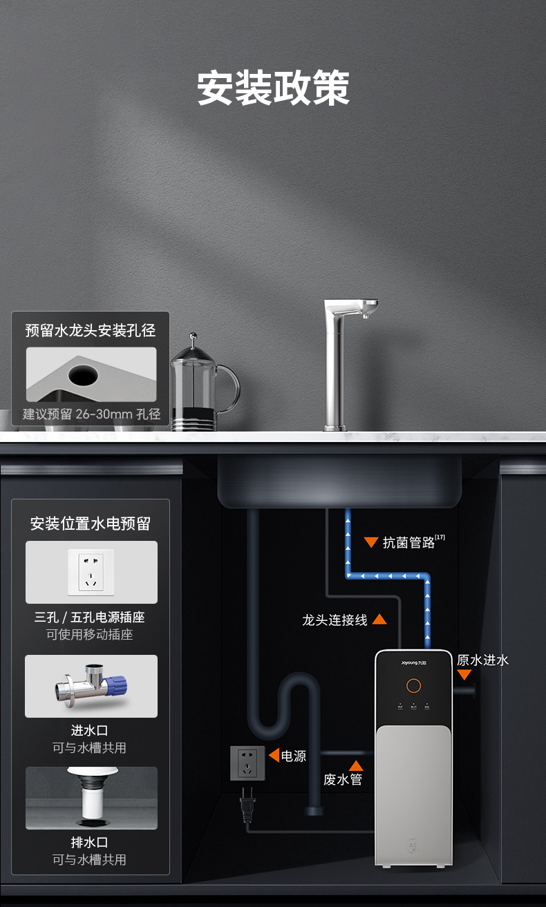 [0 Scale Inhibitor] Joyoung Water Purifier for Home Use, Direct Drinking and Heating All-In-One Machine, Reverse Osmosis Filtration, Under-Sink Drinking Water Purifier