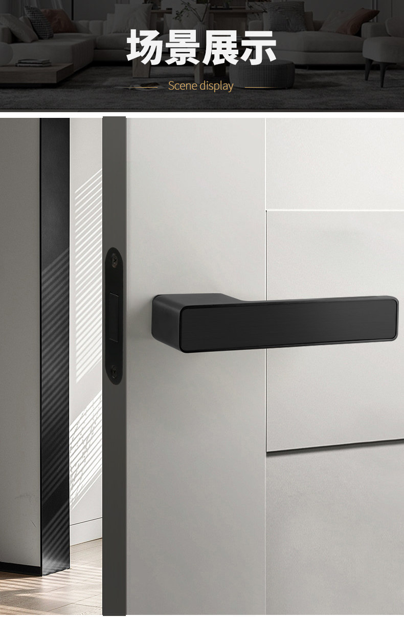 Minimalist Indoor Bedroom Black Eco-Friendly Magnetic Door Lock Italian-Style Door Handle Universal Wooden Door Silent Lock