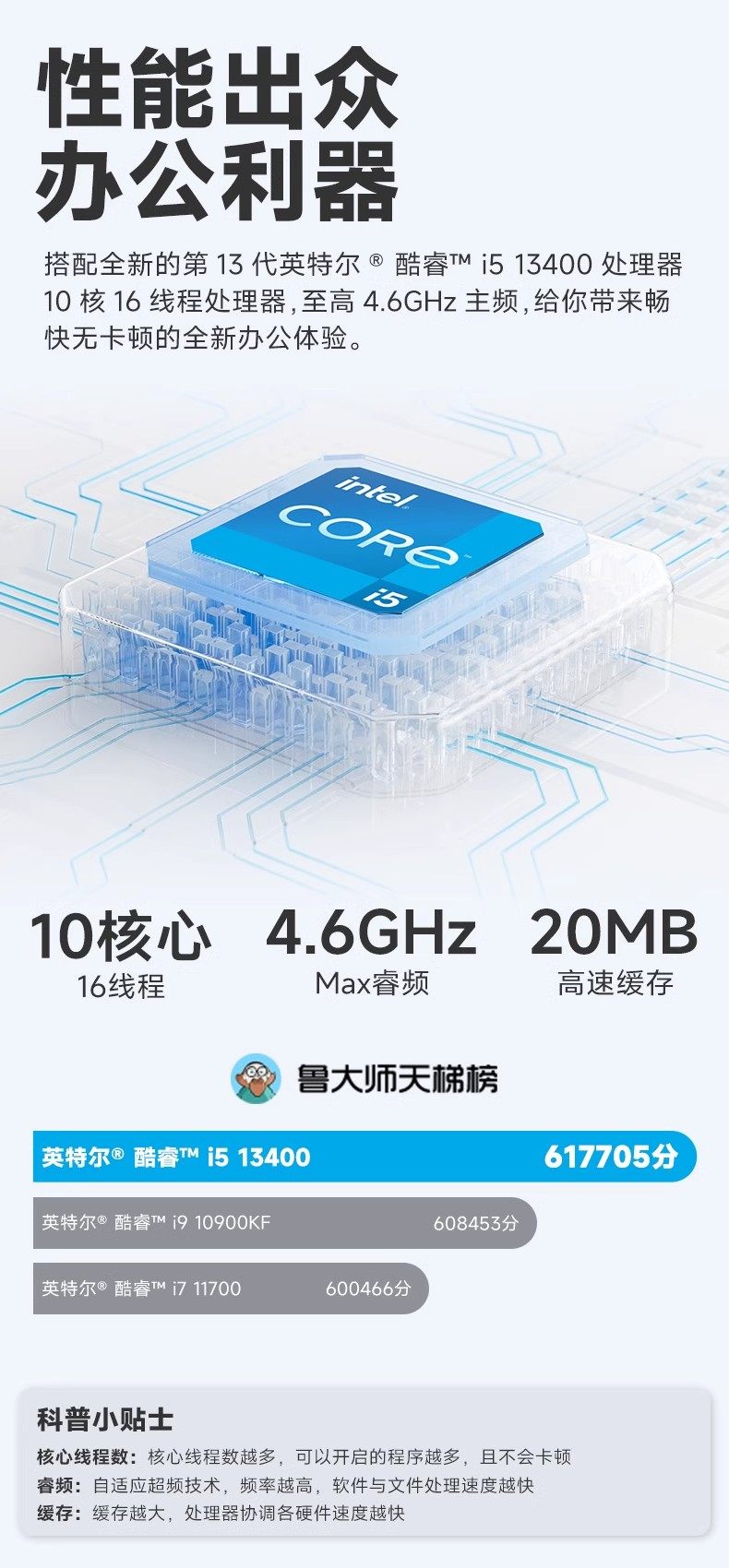 Hard Drive Capacity Configuration 1 i3 10105丨8G丨256G丨Home丨Learning,Configuration 2 i5 10400F丨8G丨256G丨Enterprise Procurement丨Office,Configuration three i3 10105丨8G丨512G丨Enterprise procurement丨Office,Configuration four i5 10400F丨8G丨512G丨Enterprise procurement丨Office,Configuration five i5 13400EF丨16G丨512G丨Education丨Graphic design,Configuration six i5 14400F丨16G丨512G丨Education丨Graphic design