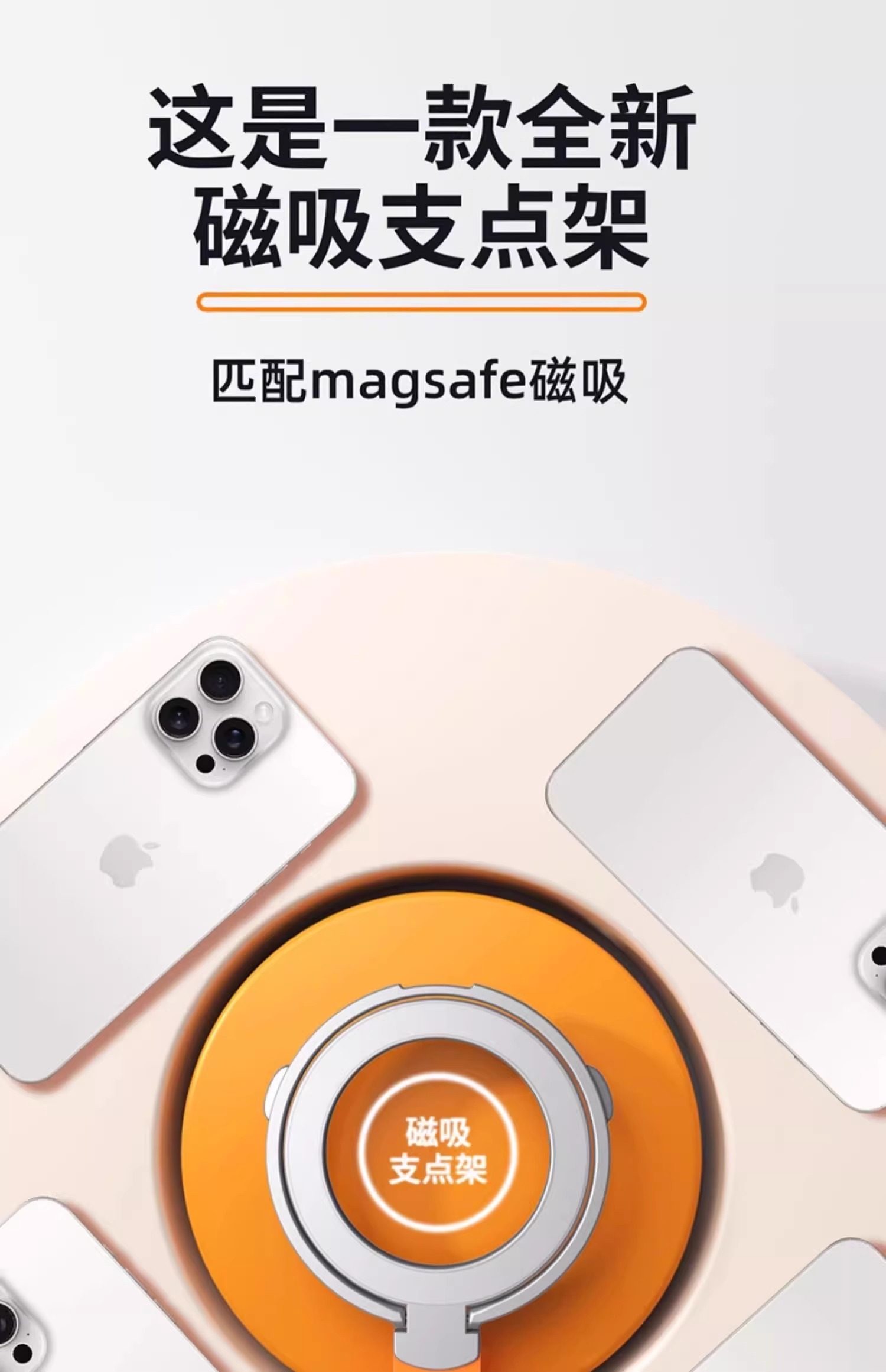2024 New Magsafe Phone Holder with Strong Magnetic Suction, Rotating Ring Buckle, Charging Car Mount, Desktop Support for Apple 16 Pro, Back Sticker for 15, Metal Photography Tool Phone Holder