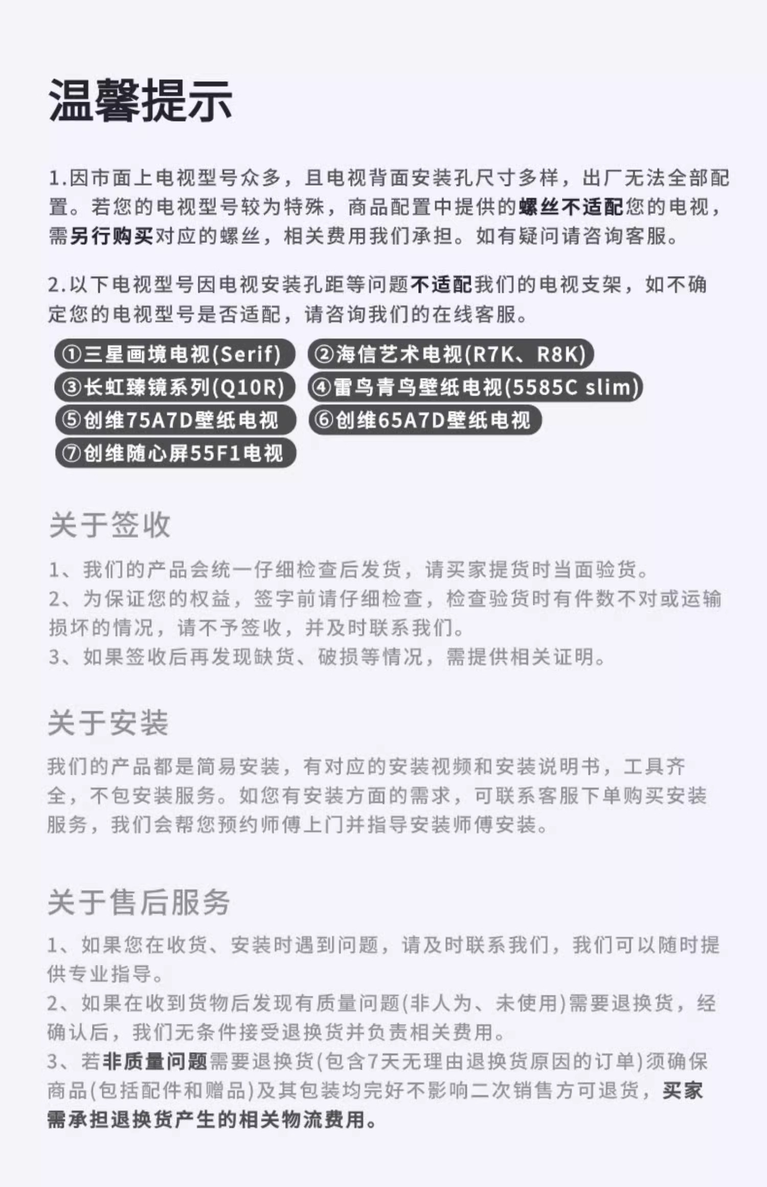 | Color Classification | Truffle Black[32-65inch Universal],Cheese White[32-65inch Universal],Truffle Black[32-75inch Universal],Cheese White[32-75inch Universal],Truffle Black[40-90inch Universal],Cheese White[40-90inch Universal],Truffle Black[32-75inch Universal]Storage[Pu Leather Storage Bag],Cheese White[32-75inch Universal]Storage[Pu Leather Storage Bag],[60 Days Free Trial]Merchant Commitment |
