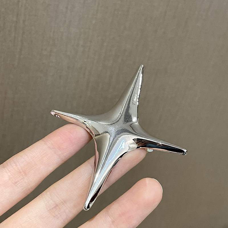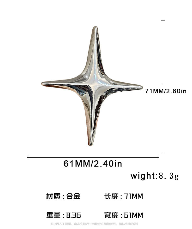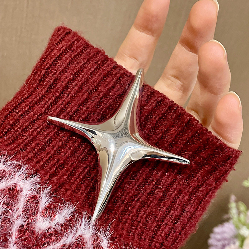Silver Cross Star Metal Suit Brooch for Women, New Autumn Style, High-End Niche Design Starburst Pin, Trendy