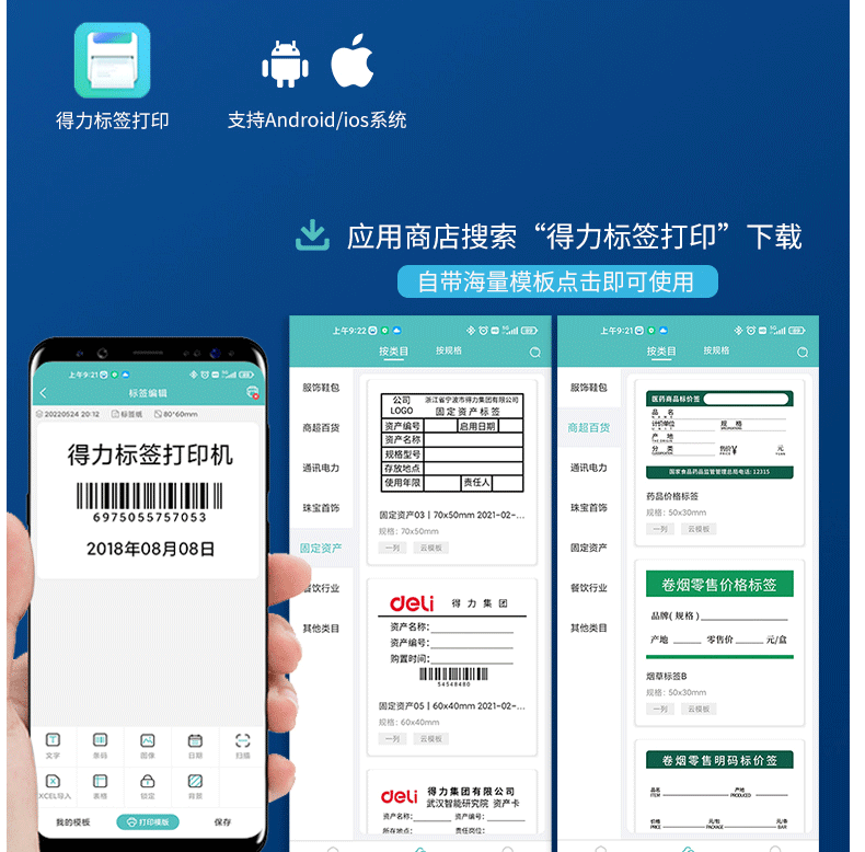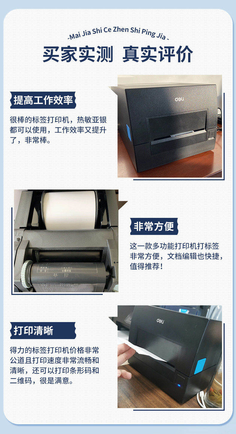 Deli Ribbon Label Barcode Printer Thermal Adhesive Thermal Transfer Printer Coated Paper Matte Silver Paper Jewelry Clothing Tag Certificate Coding Machine Supermarket Food Date Labeling Machine