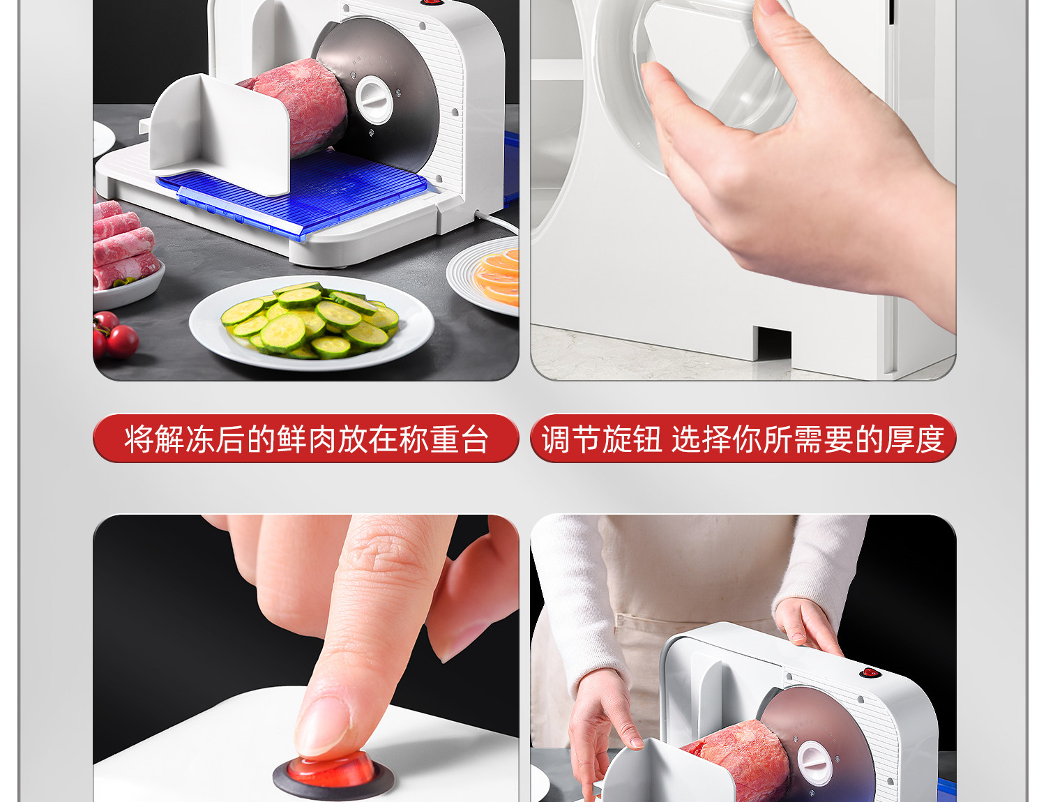 | Color Classification | Stainless Steel Blade[Meat Pusher],Stainless Steel Blade[Free Meat Pusher + Frozen Meat Bag*10],Stainless Steel Blade[Free Meat Pusher + Frozen Meat Bag*20],Stainless Steel Blade[Free Meat Pusher + Frozen Meat Bag*40],Stainless Steel Blade[Food Tray + Spare Blade*1 + 10 Frozen Meat Bags],Stainless Steel Blade[Food Tray + Spare Blade*1 + 20 Frozen Meat Bags],Stainless Steel Blade[Food Tray + Spare Blade*1 + 40 Frozen Meat Bags],All with Baffle Knobs[1-15mm Thickness Adjustable],Order Now and Get a Free Frozen Meat Bag![Post a Picture and Get an Instant 10 Yuan Back] |