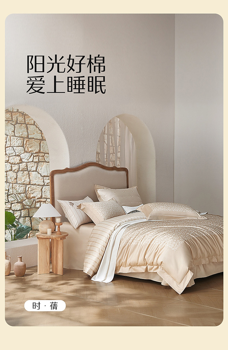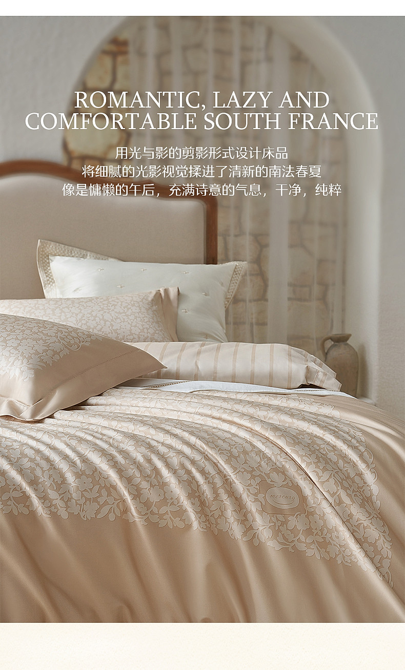 Mercury Home Textiles 100S Xinjiang Long-Staple Cotton Four-Piece Set Double-Strand Light Luxury Set French-Style Double Bed Sheet Duvet Cover Bedding