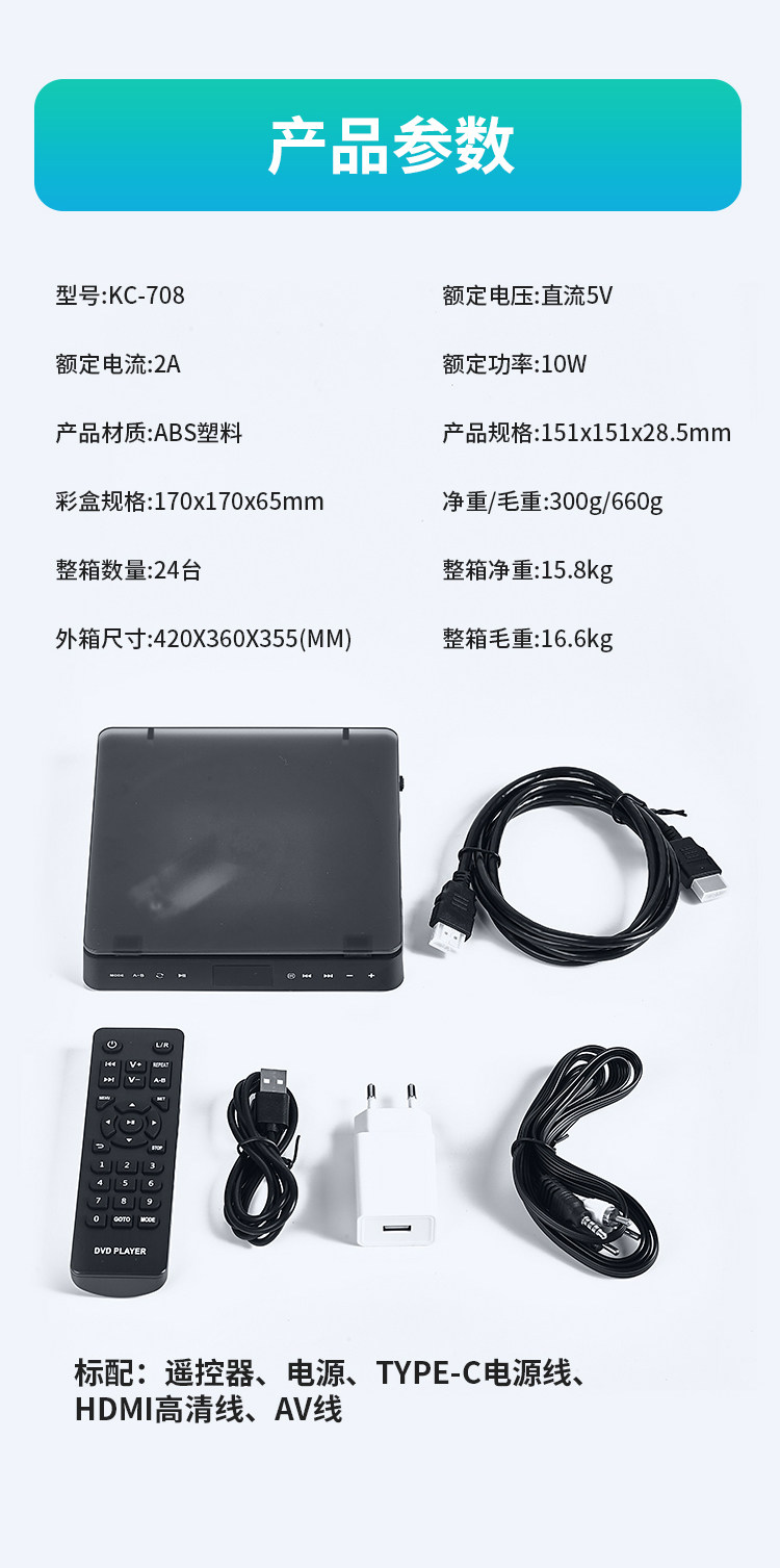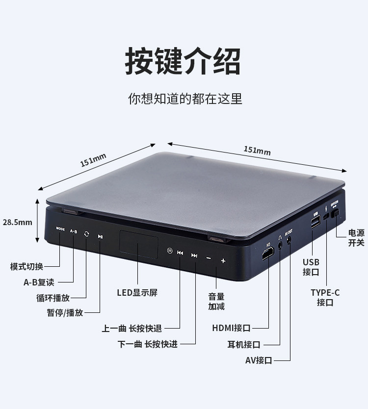 Portable Home High-Definition Dvd Player, All-In-One Disc Player, Vcd Disc Player, Can Be Connected to Tv and Projector