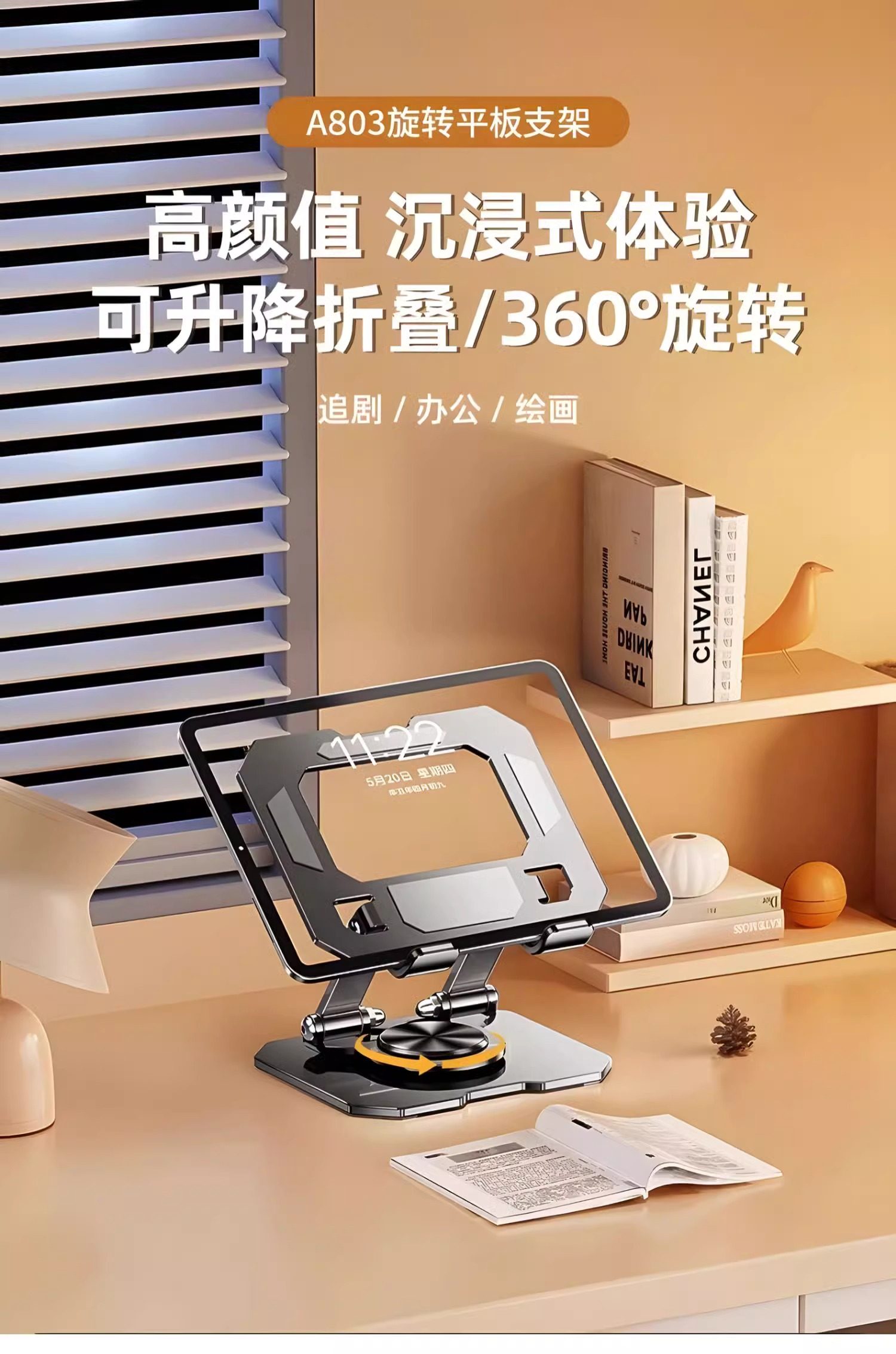 Xue En[Ultra-Stable, No Shaking 720] ° Rotating] Tablet Stand for Desktop, iPad Degree, Dedicated for Gaming, Portable, Foldable, Height-Adjustable, Suitable for Apple, Huawei, Mobile Phones, and Computers, Universal Support Stand