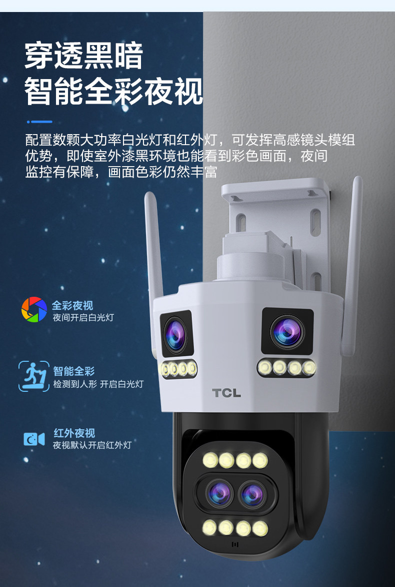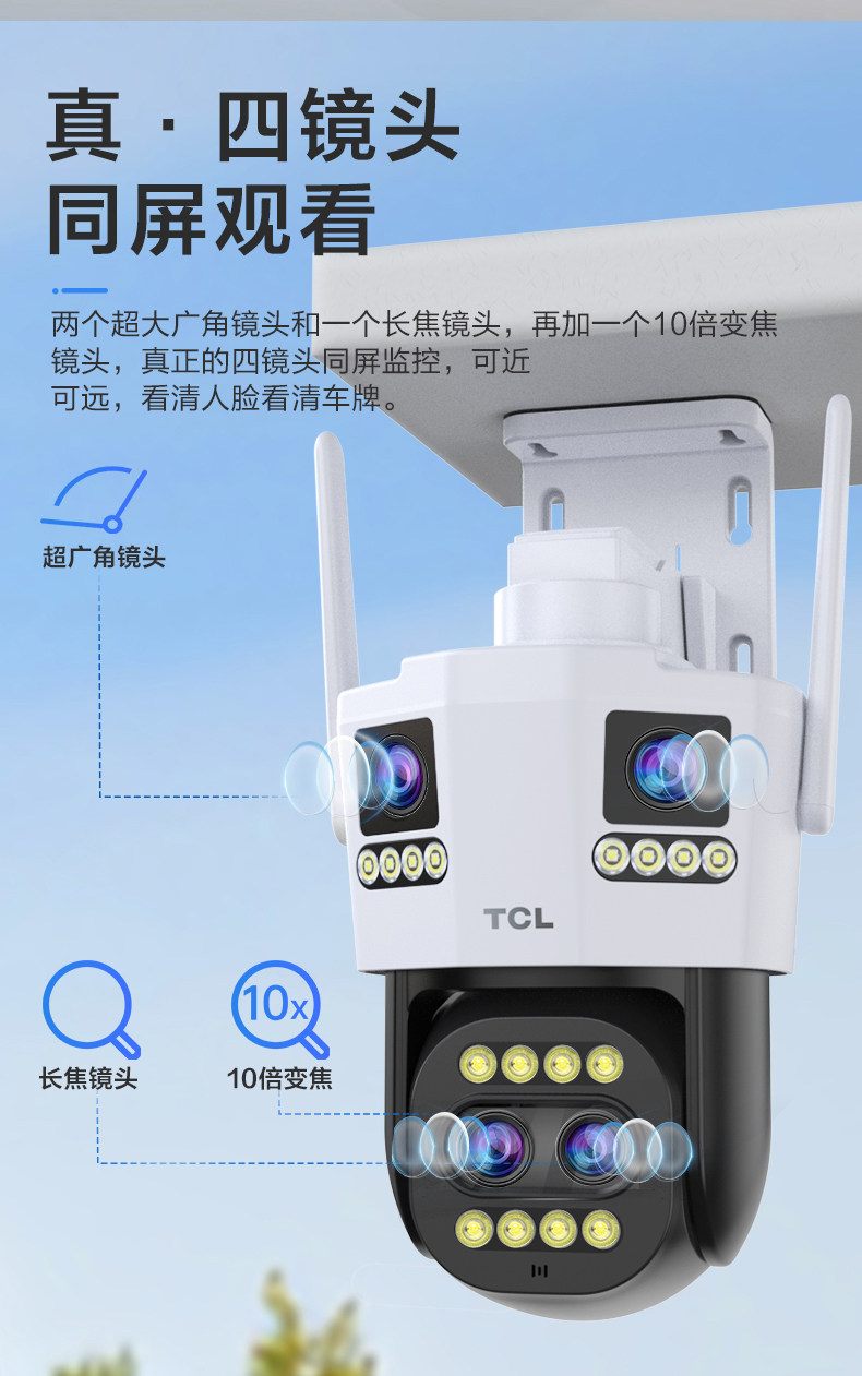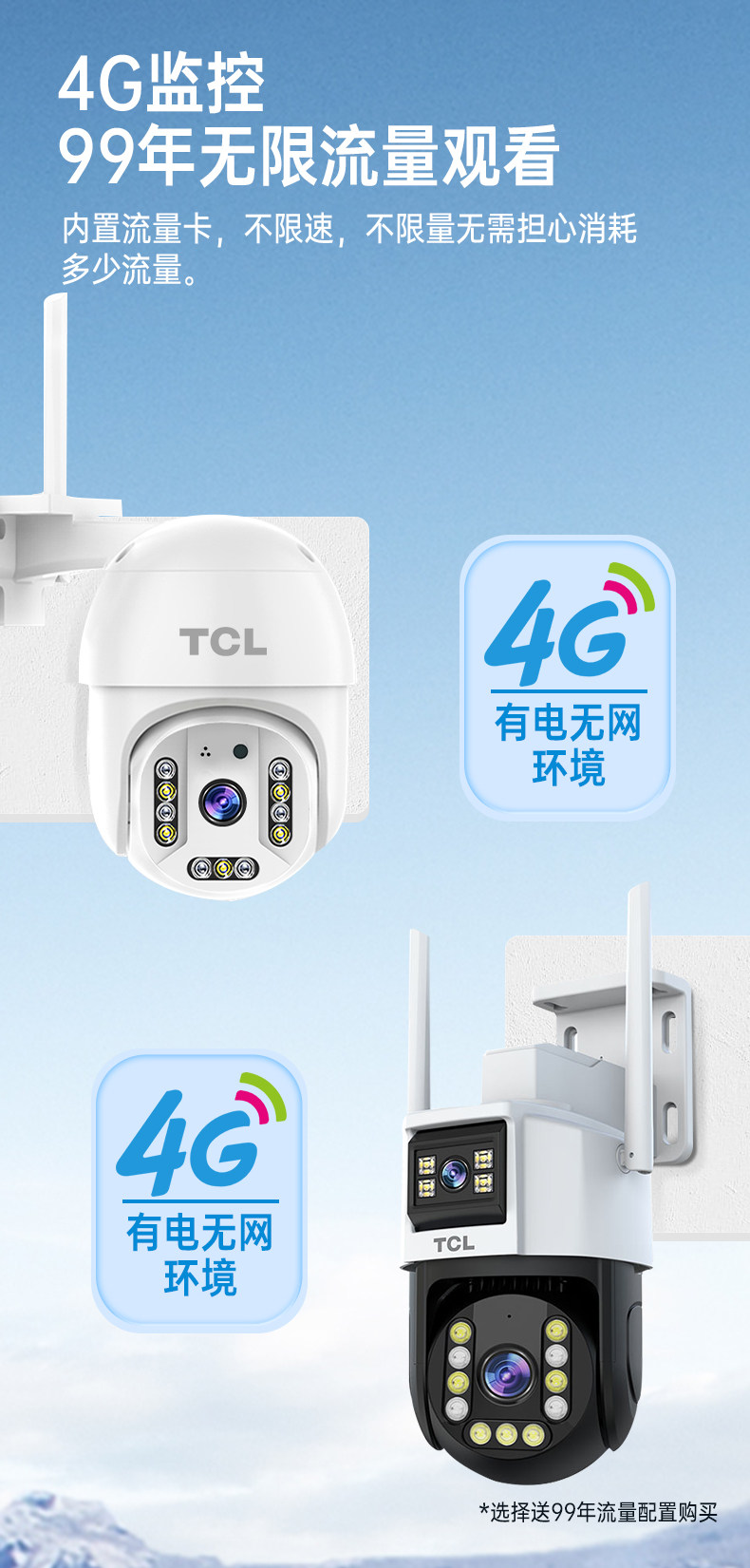 Tcl Outdoor Wireless Monitor with Mobile Phone Remote Control, Voice Camera, 360-Degree Panoramic View, 4g High-Definition Night Vision Photography