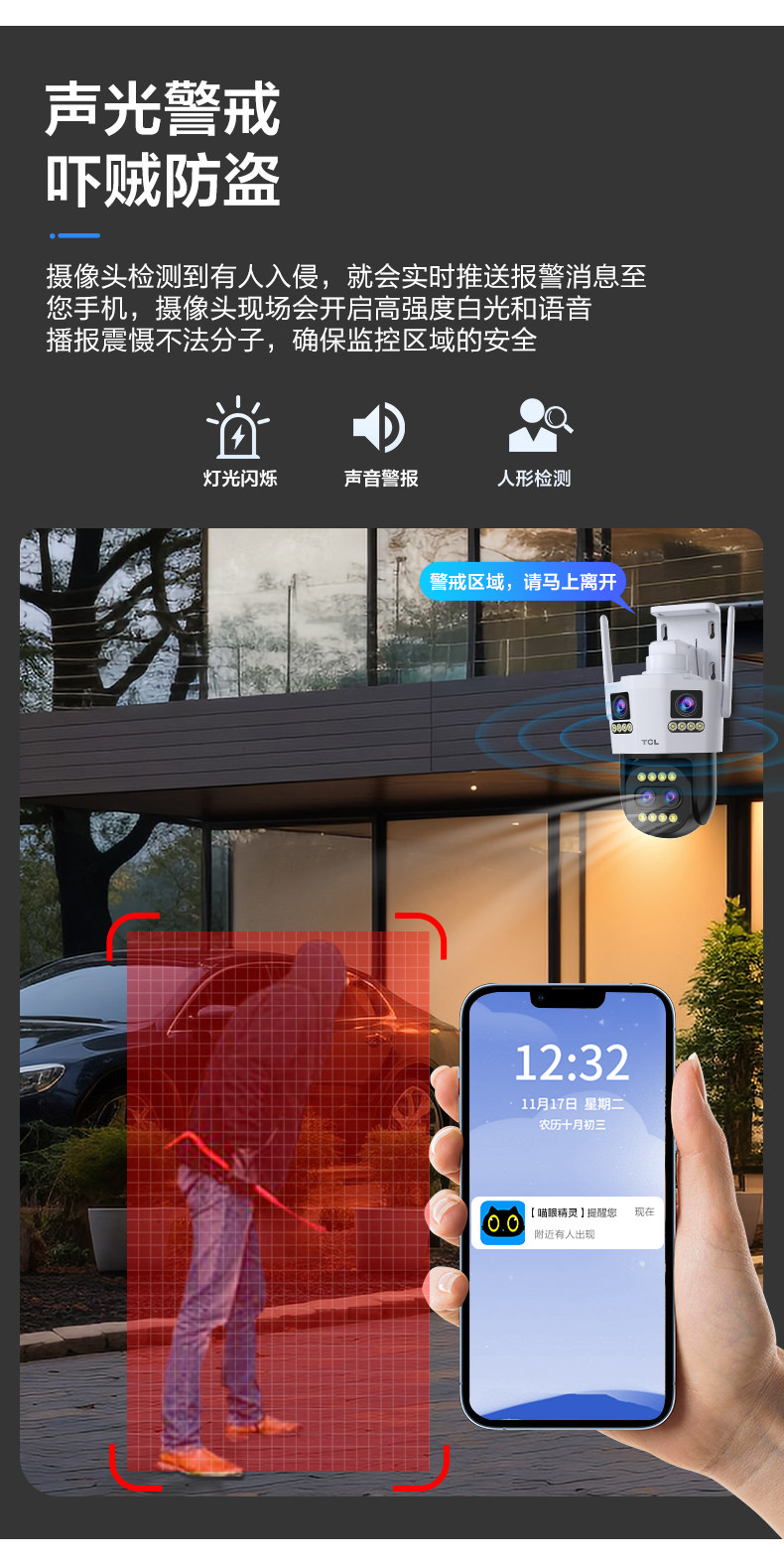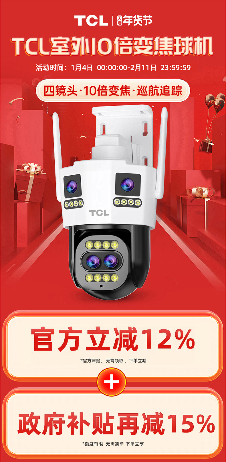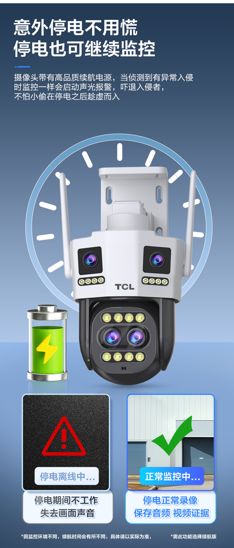 Tcl Outdoor Wireless Monitor with Mobile Phone Remote Control, Voice Camera, 360-Degree Panoramic View, 4g High-Definition Night Vision Photography