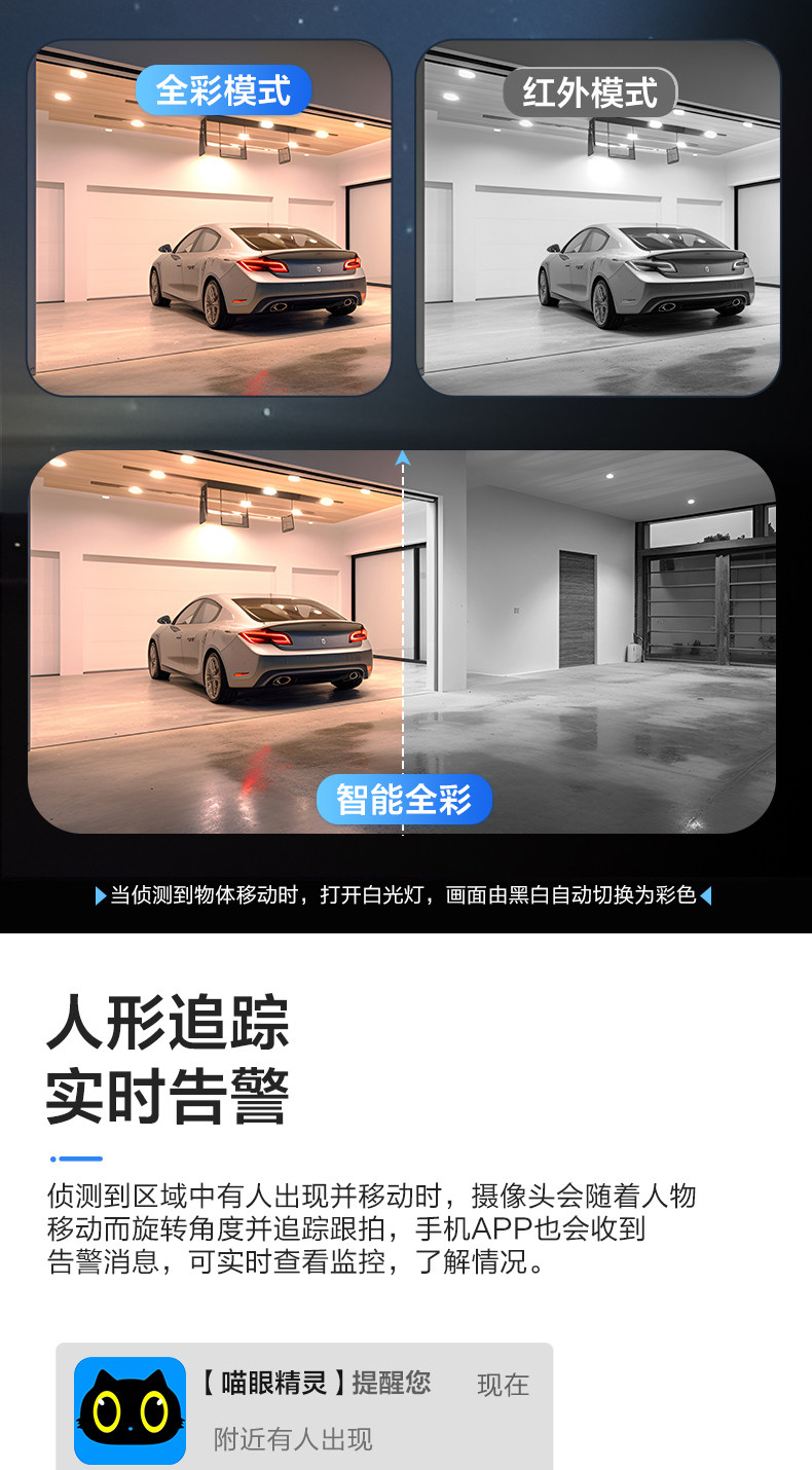 | Function | Full Color Night Vision,Perimeter Alarm,Recording,360 Degree Monitoring,Two-Way Voice Intercom |