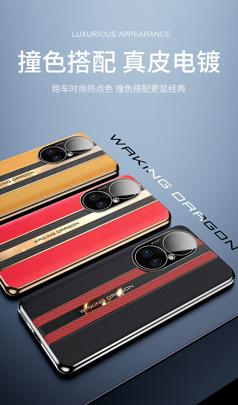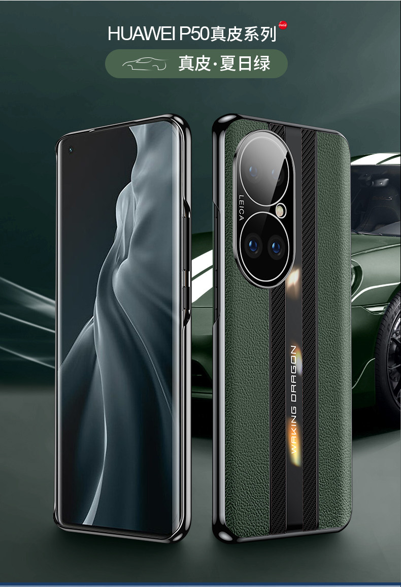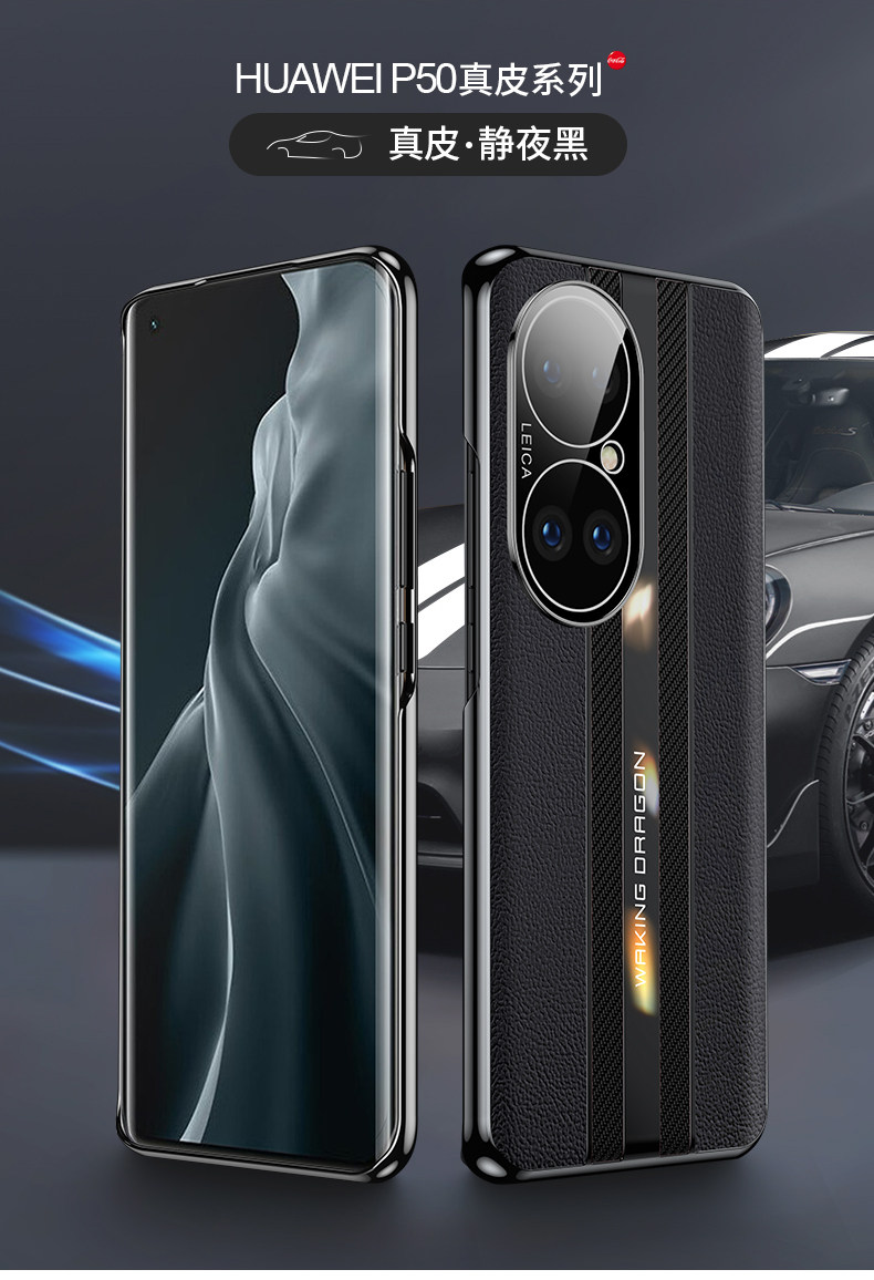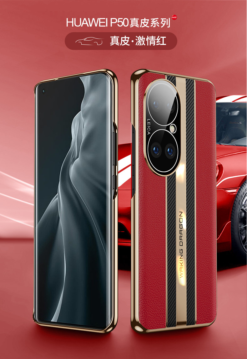 Suitable for Huawei P50 Phone Case, P50 Pro Instantly Transforms into a Porsche, Men's Genuine Leather New Model, Full Coverage Electroplating, 50 Anti-Drop Ultra-Thin, Unisex, Luxury Internet Celebrity 5g Version, High-End Trendy Protective Case
