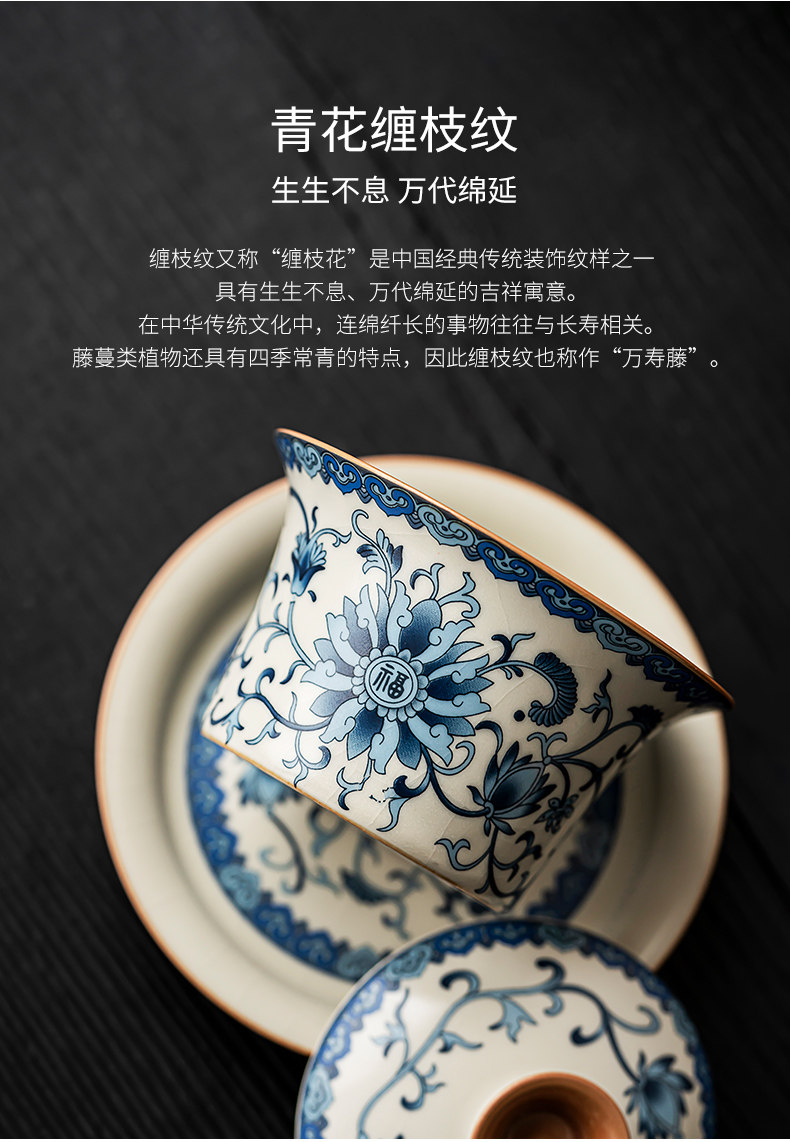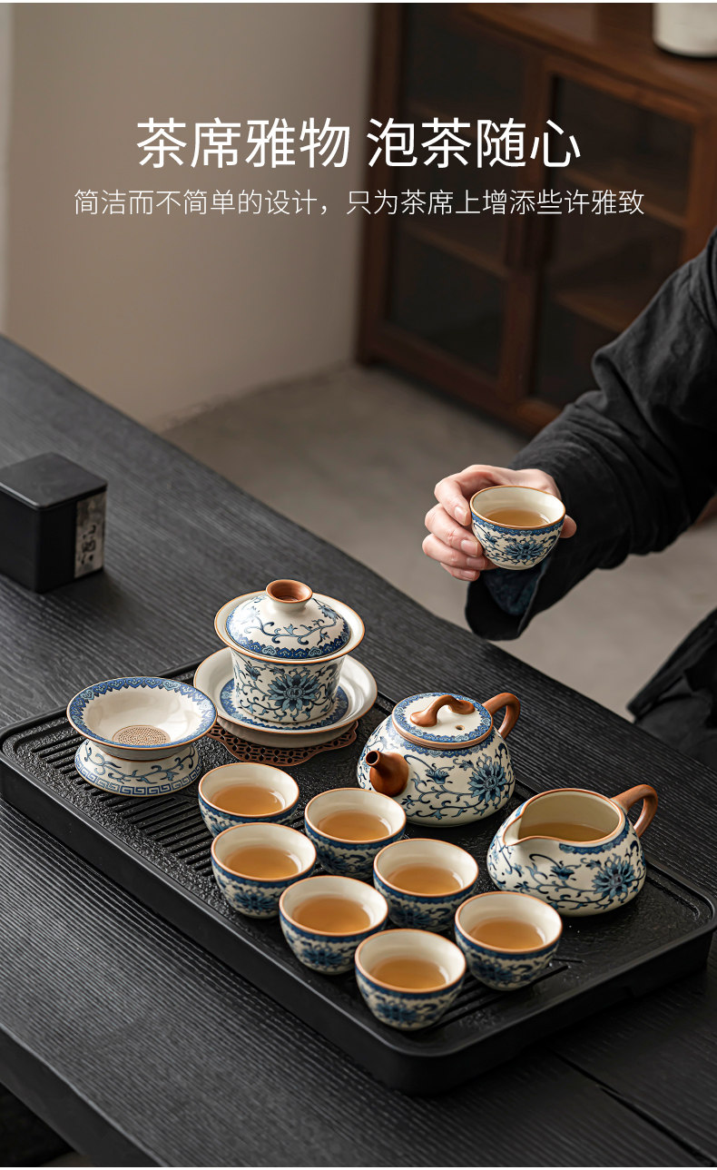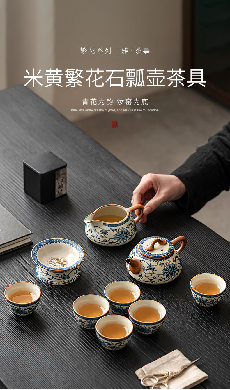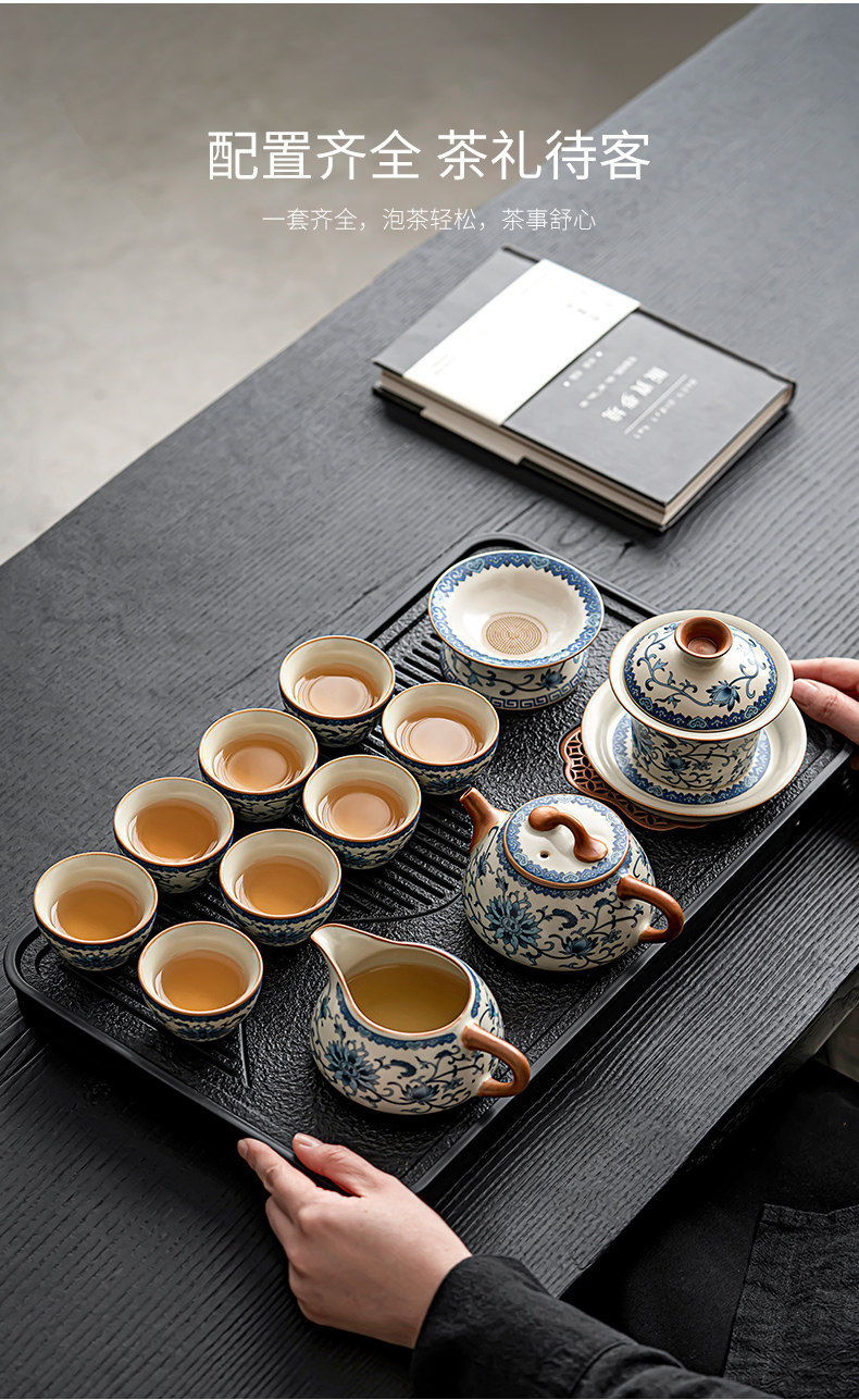 Tangfeng 2026 New Blue and White Ru Kiln Kung Fu Tea Set for Home Use, Light Luxury High-End Set with Teapot and Teacups