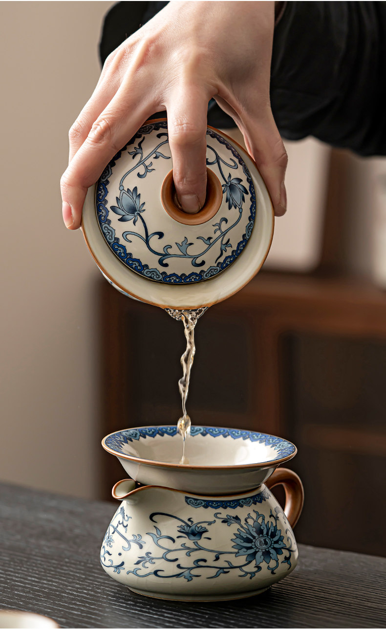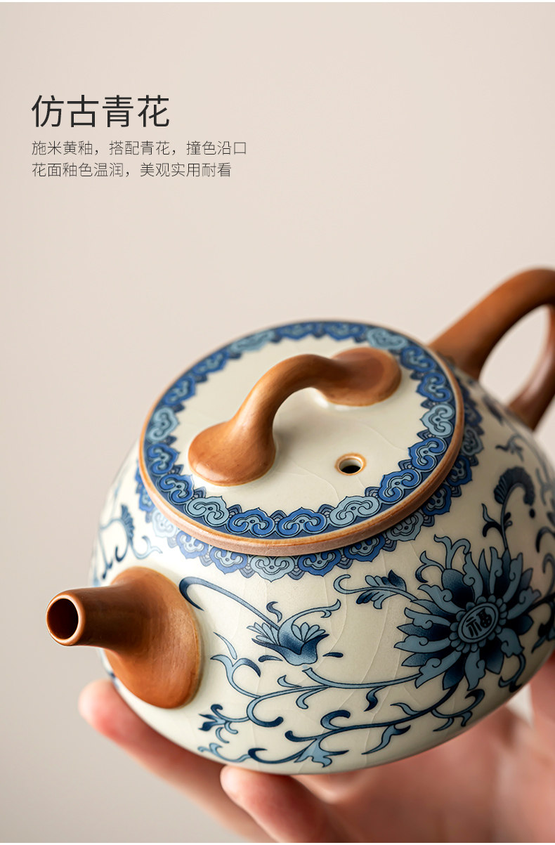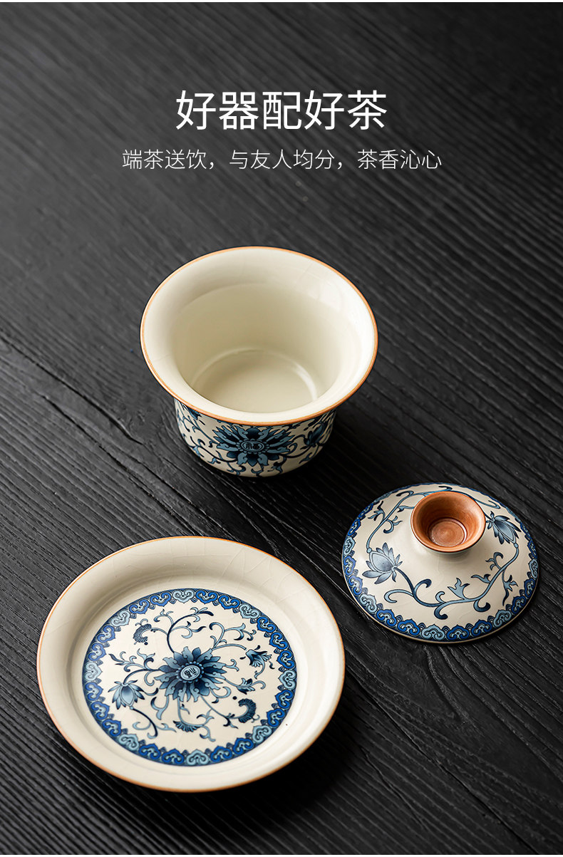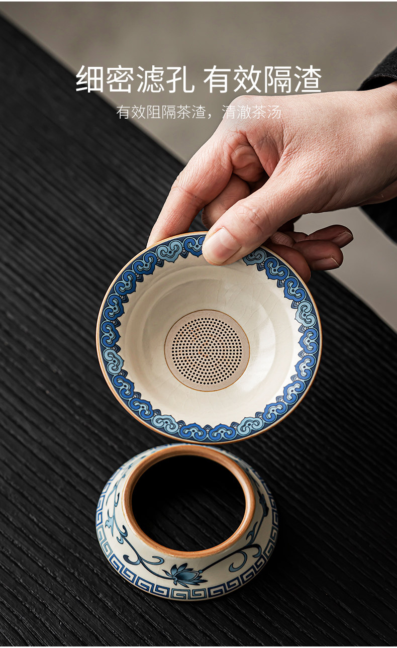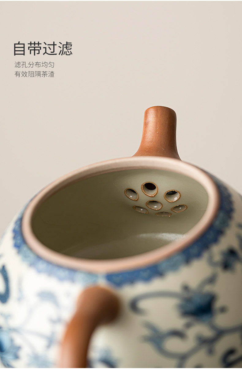 Tangfeng 2026 New Blue and White Ru Kiln Kung Fu Tea Set for Home Use, Light Luxury High-End Set with Teapot and Teacups