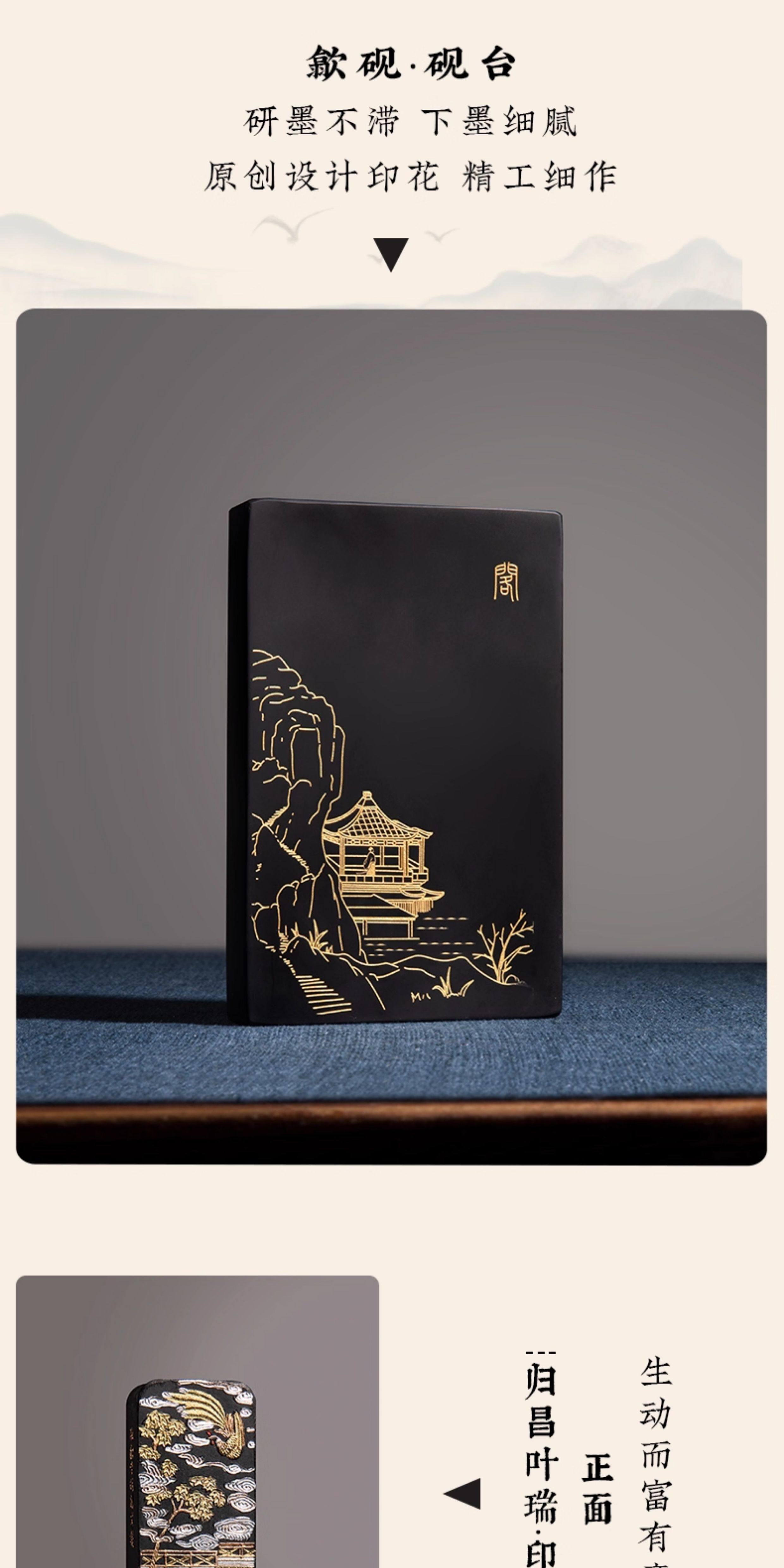 Professional-Grade Four Treasures of the Study Set Gift Box for Gifting and Collection, Including Pen, Ink, Paper, and Inkstone, Intangible Cultural Heritage Shixi Inkstone, High-End Premium Gift, Paperweight, Special Ornament for Calligraphy Practice