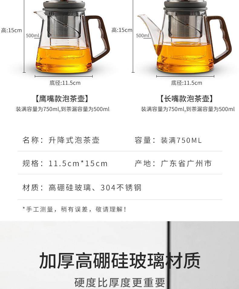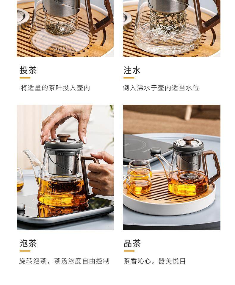 Thickened Top Kettle, Elegant Cup, High-Temperature Resistant Glass Teapot, Rotating and Lifting Type, Single Tea-Water Separation, Office Tea Set