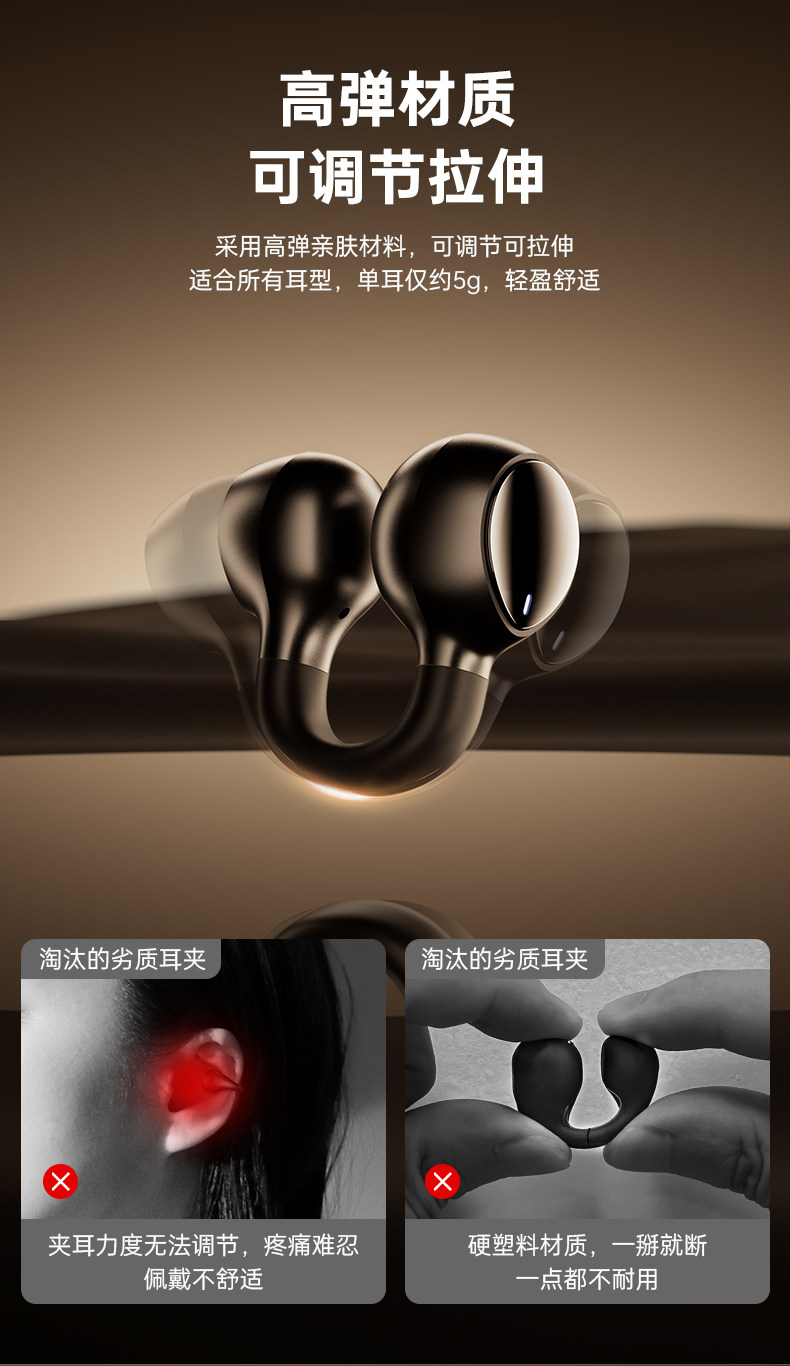 Bluetooth Bone Conduction Sports Earphones, Non-In-Ear, Wireless Ear Clip Type, Over-Ear, 2025 New Model, High-End, for Men and Women, Suitable for Athletes