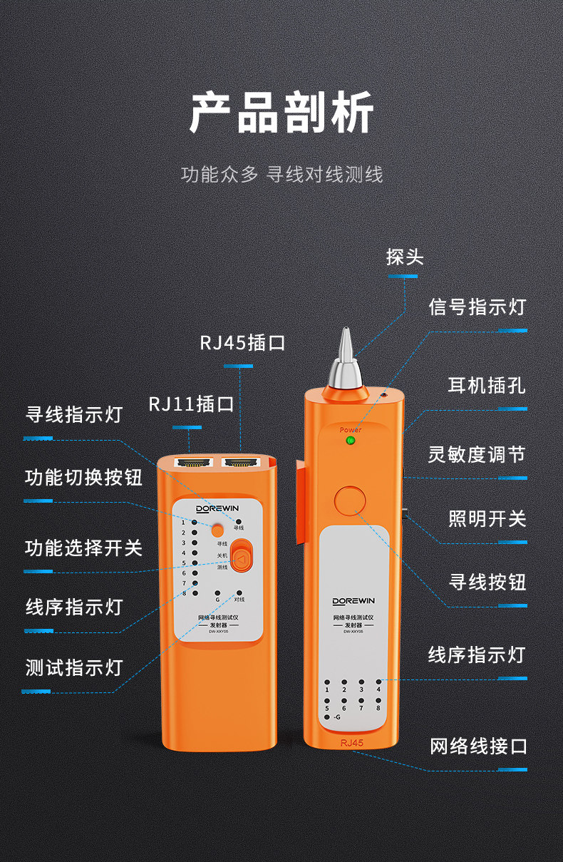 Darewin Line Finder Network Tester Cable Tracker Network Cable Detector Line Finder Cable Tester Poe Line Matching Device Multifunctional Anti-Interference Signal Charging Detector Broadband Tool