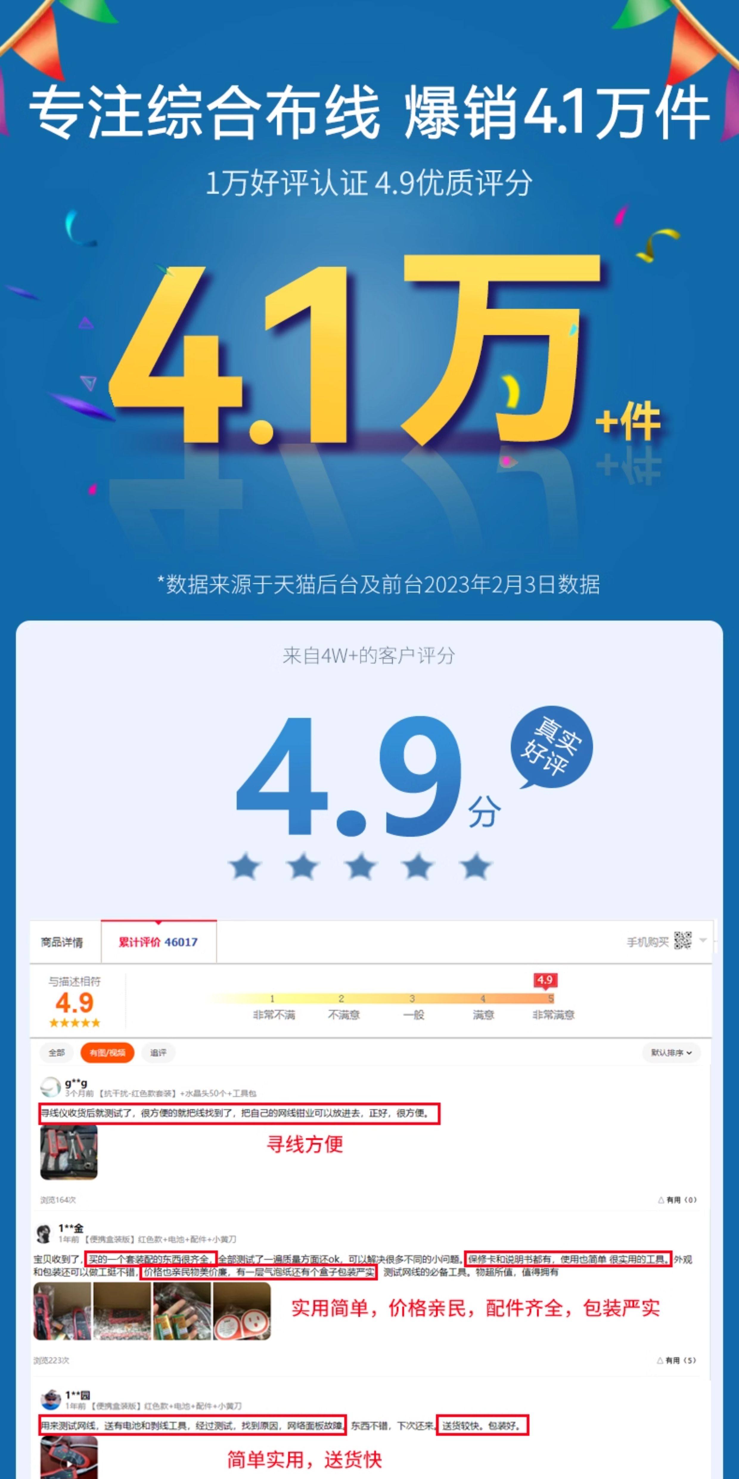 | Color Classification | [Upgraded Version-60V Anti-Burn] Standard Boxed [0m Line Search - Enhanced Signal],[Upgraded Version-60V Anti-Burn] + Storage Bag [0m Line Search - Enhanced Signal],[Upgraded Version-60V Anti-Burn] Network Tool Set [0m Line Search - Enhanced Signal],ăAdvanced Digital Version - 60V Burn-ProofăStandard Boxed Set ăNoiseless/Anti-Interference/With Network Cable Tracingă,[Advanced Digital Version-60V Anti-Burn] + Storage Box [No Noise/Anti-Interference/With Network Line Search],[Advanced Digital Version-60V Anti-Burn] Network Tool Set [Noiseless/Anti-Interference/With Network Line Search],ăEnhanced Version - 60V Burn-ProofăStandard Boxed ă0m Wire Finder - Positive/Negative Detectionă,[Enhanced Version-60V Anti-Burning] + Storage Box [0m Line Search-Positive and Negative Detection],[Enhanced Version-60V Anti-Burn] Network Tool Set [0m Line Search-Positive and Negative Detection],[Standard Version-60V Anti-Burn] Standard Box,Optical Long-Life Version: Fiber/Network Cable Tracing, Network Pairing, Wire Tracing,ăDigital Engineering Edition - 60V Burn-Proof - Fine-Tuned Line FindingăUpgraded Boxed Set ăNoiseless/Anti-Interference/With Network Line Findingă,[Digital Engineering Version-60V Anti-Burning-Fine-Tuning Line Search] + Storage Bag [No Noise/Anti-Interference/With Network Line Search],[Gold Label Digital Engineering Edition-60V Anti-Burn-Fine Tuning Line Search] Engineering Recommendation [No Noise/Anti-Interference/With Network Line Search] |