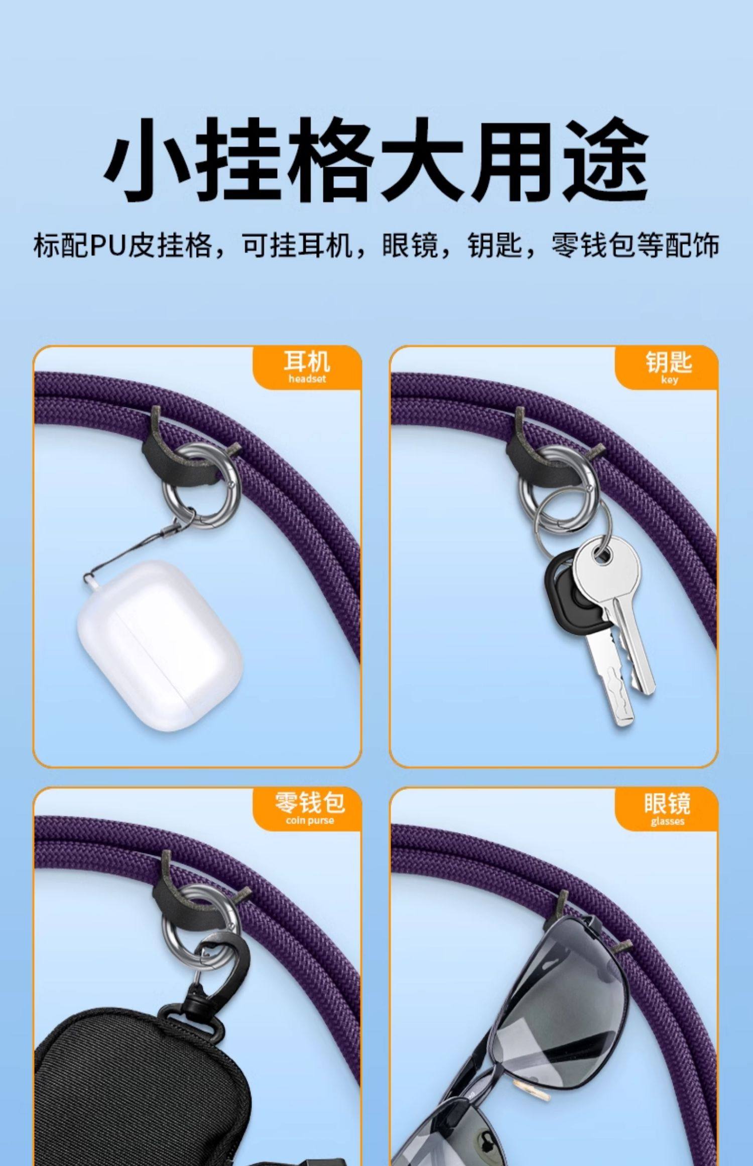 Mobile Phone Lanyard, Crossbody, Can Be Worn Around the Neck, Adjustable and Retractable Strap, High-End Wrist Woven Strap, Long Style, for Apple and Huawei Phone Cases, Ring Buckle Pendant, High-End Accessory Chain, Anti-Lost