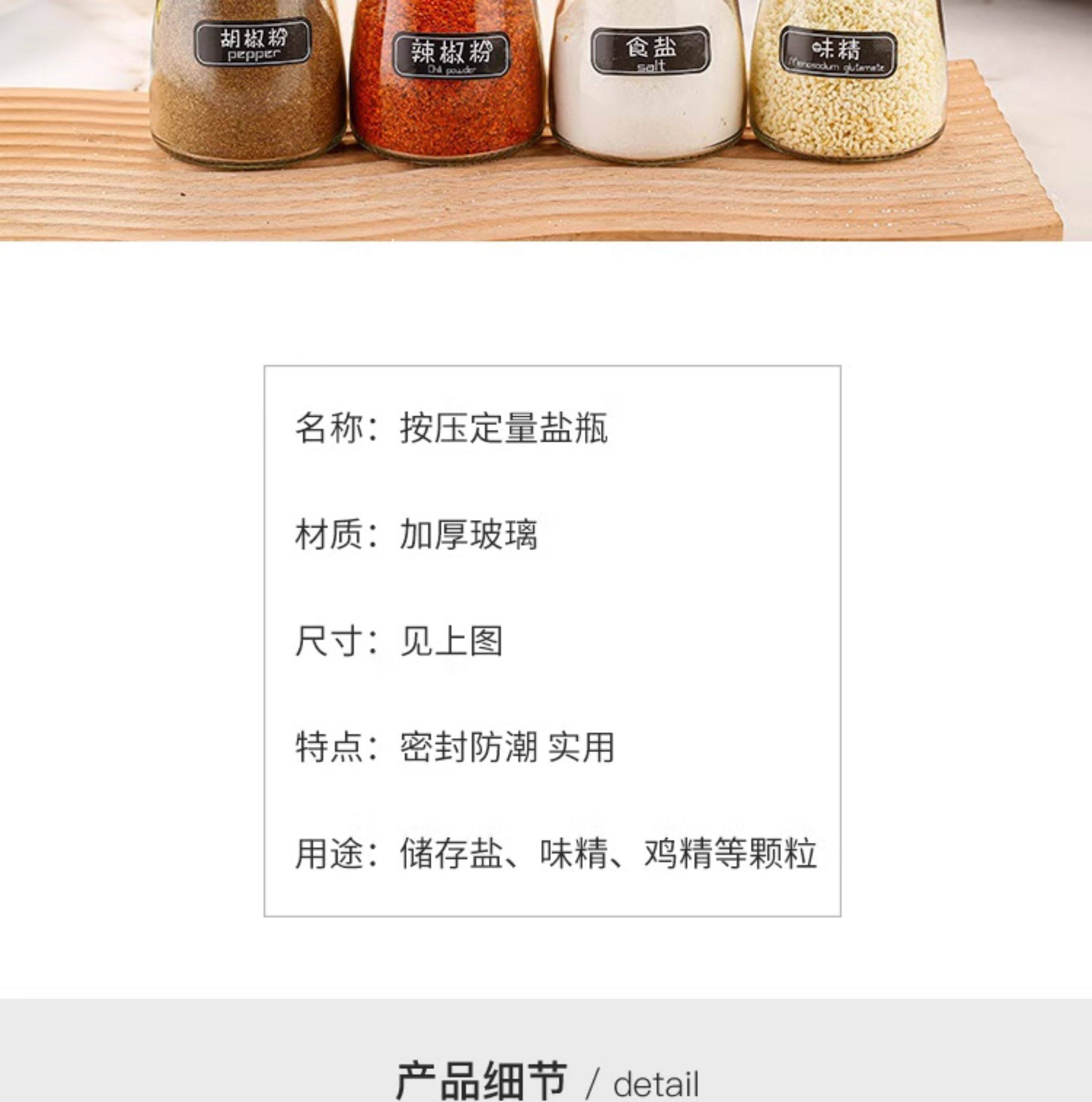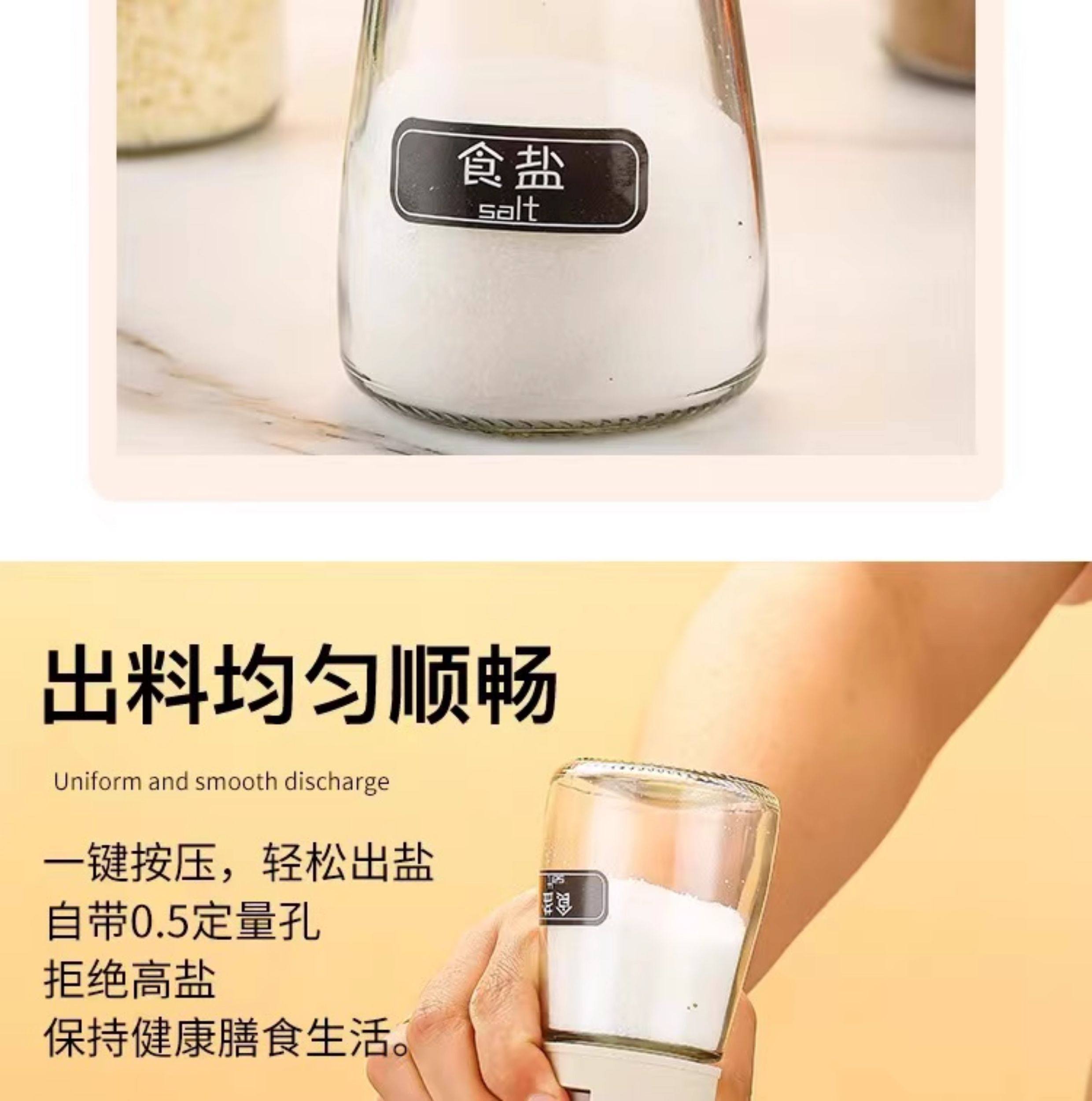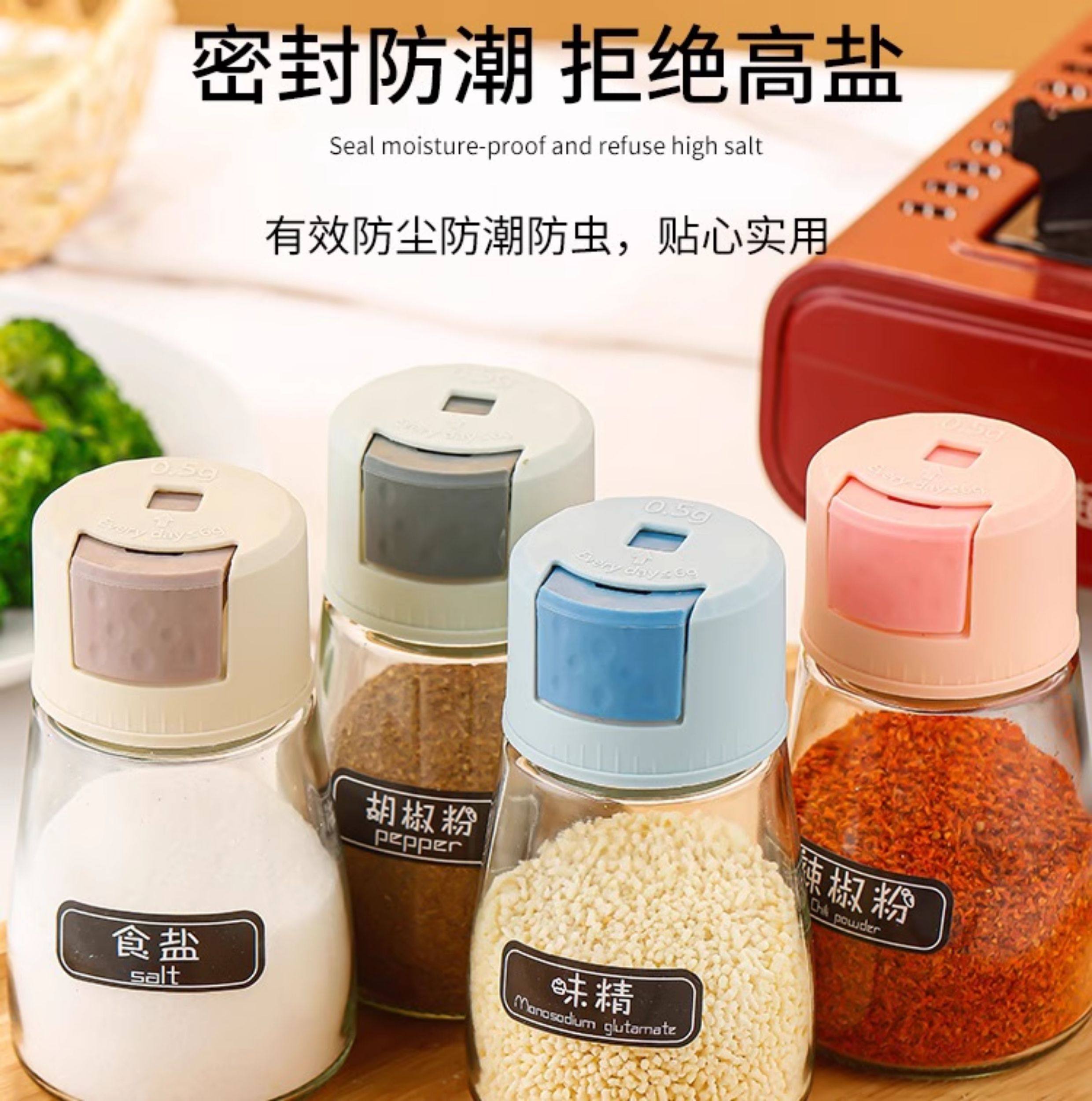 Kitchen Glass Seasoning Salt Control Bottle, Press-Type Quantitative Seasoning Jar, Sealed Seasoning Box, Salt Jar, Msg Seasoning Jar