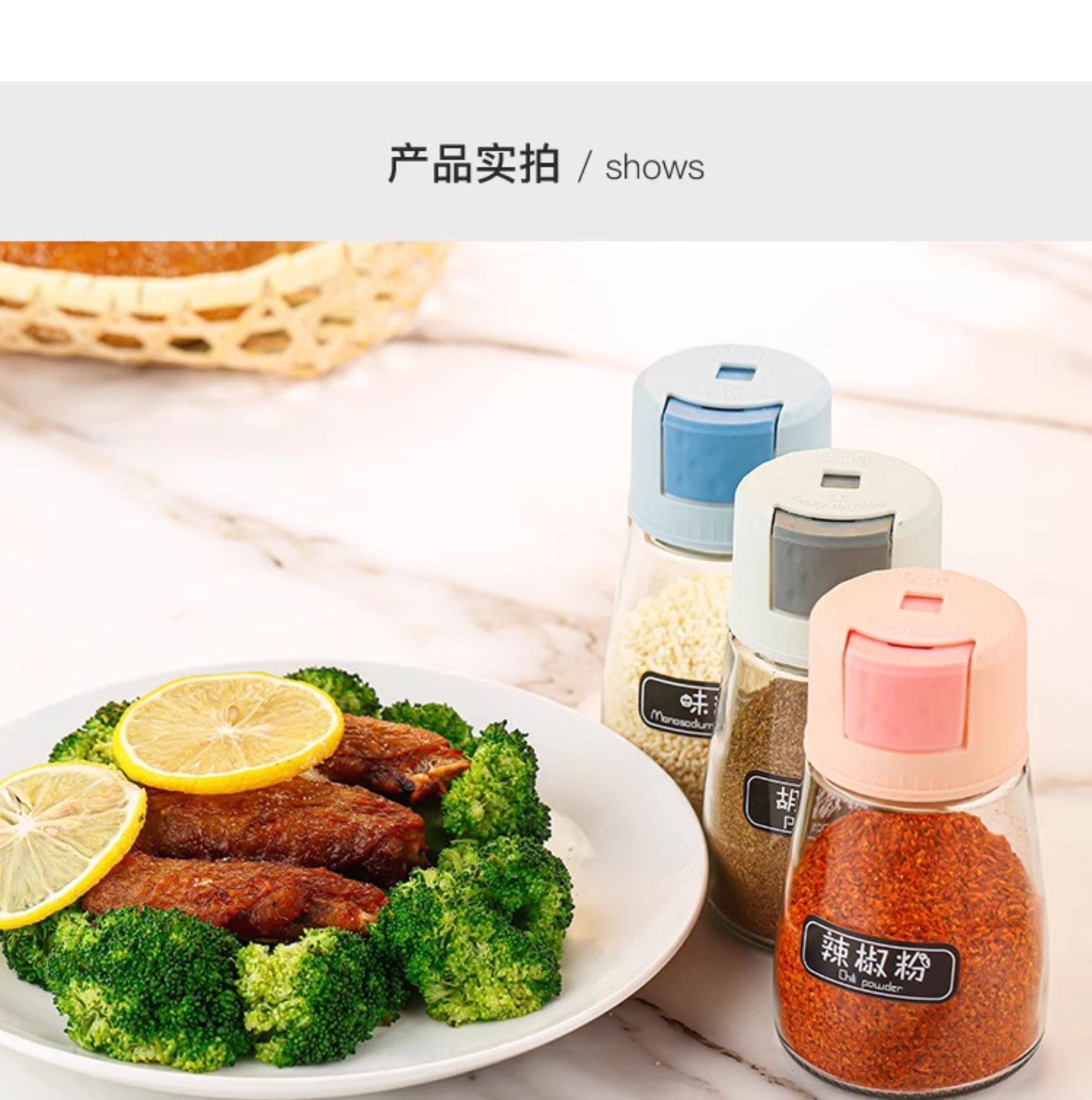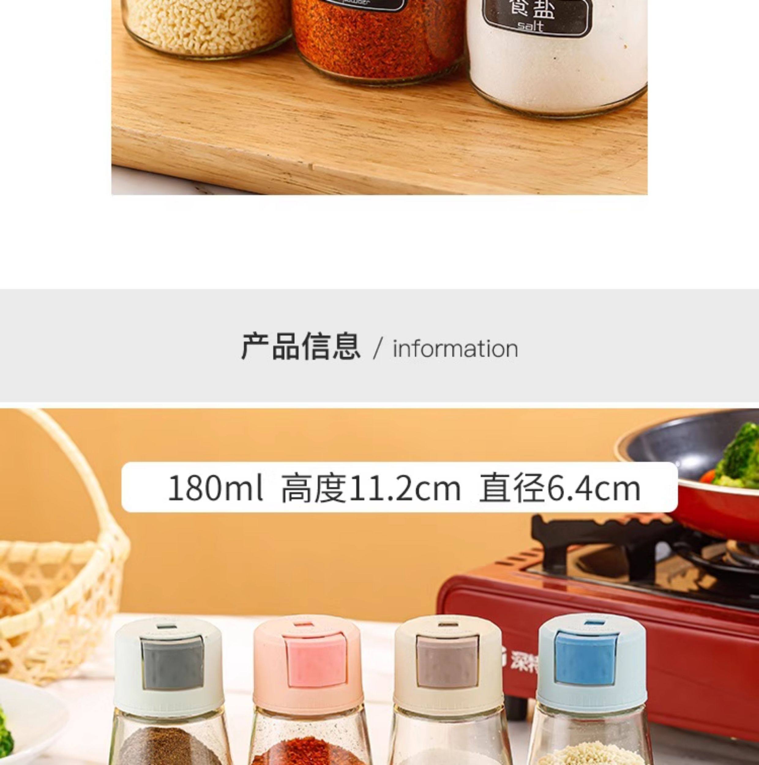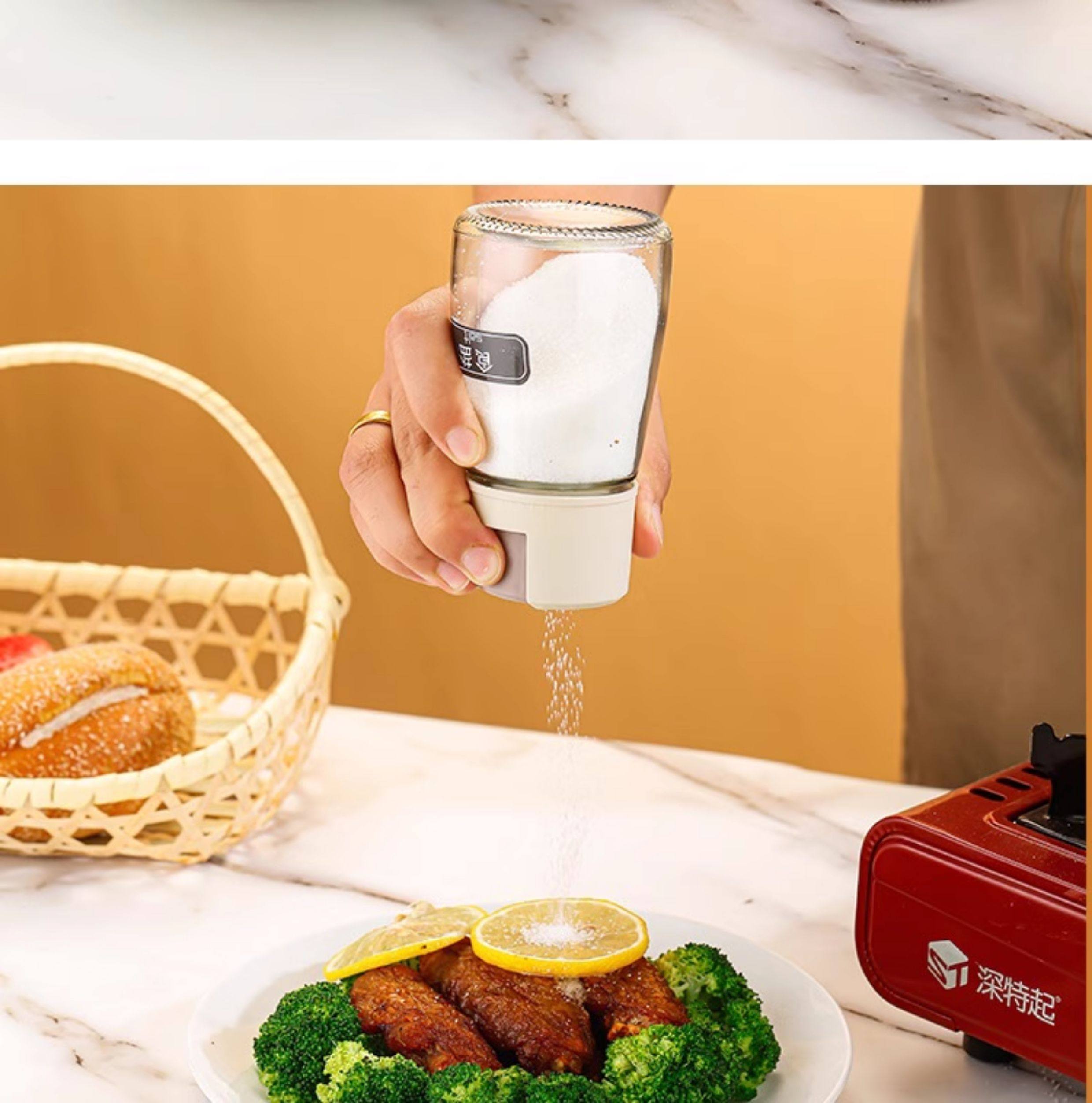 Kitchen Glass Seasoning Salt Control Bottle, Press-Type Quantitative Seasoning Jar, Sealed Seasoning Box, Salt Jar, Msg Seasoning Jar
