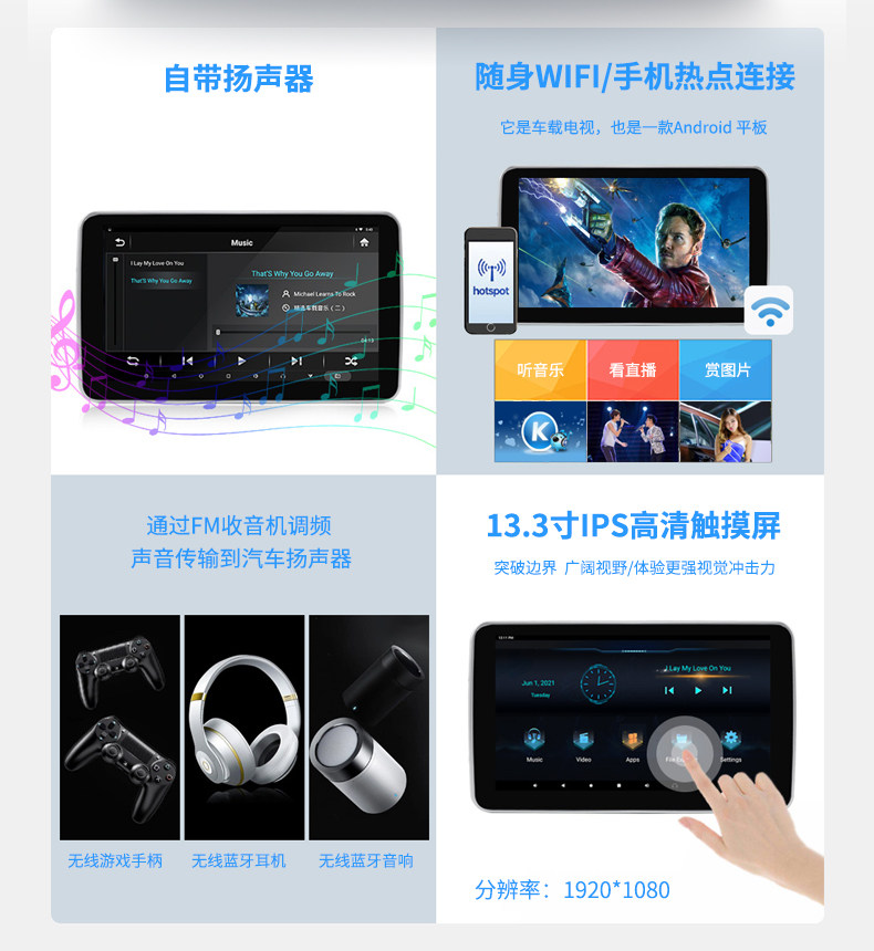 Han Guang Car Headrest Screen Rear Entertainment Android System Car Tv Tablet Monitor High-Definition Rear Seat Headrest