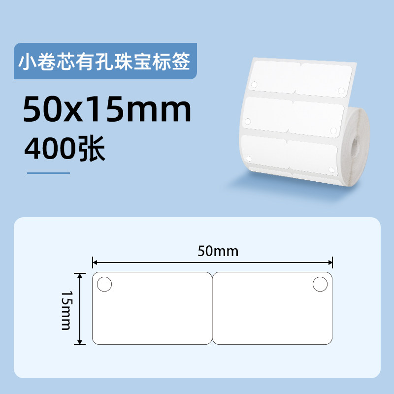 Puku Q1 Jewelry Thermal Self-Adhesive Label Waterproof, Non-Slip, Scratch-Proof and Tear-Proof Four-Proof Label Small Roll Core Jewelry Tag Printing Paper with Hole Sticker Jewelry Barcode Gold and Silver Wire
