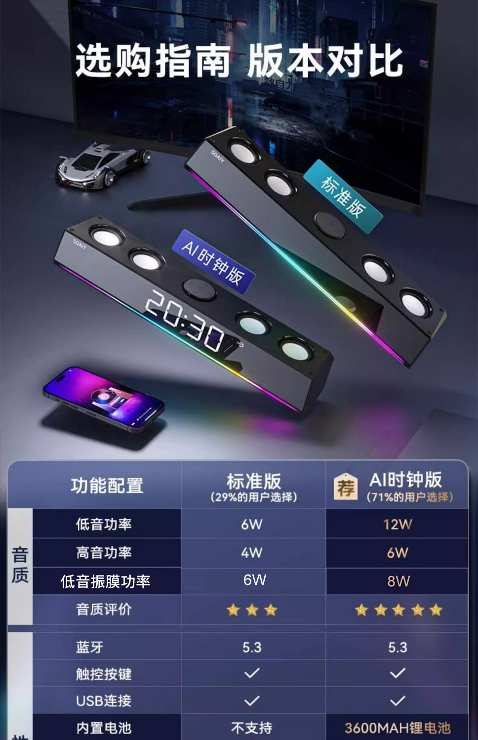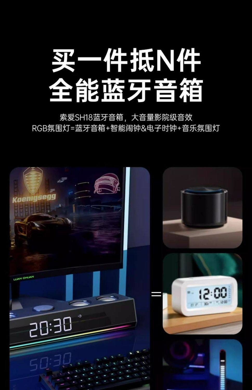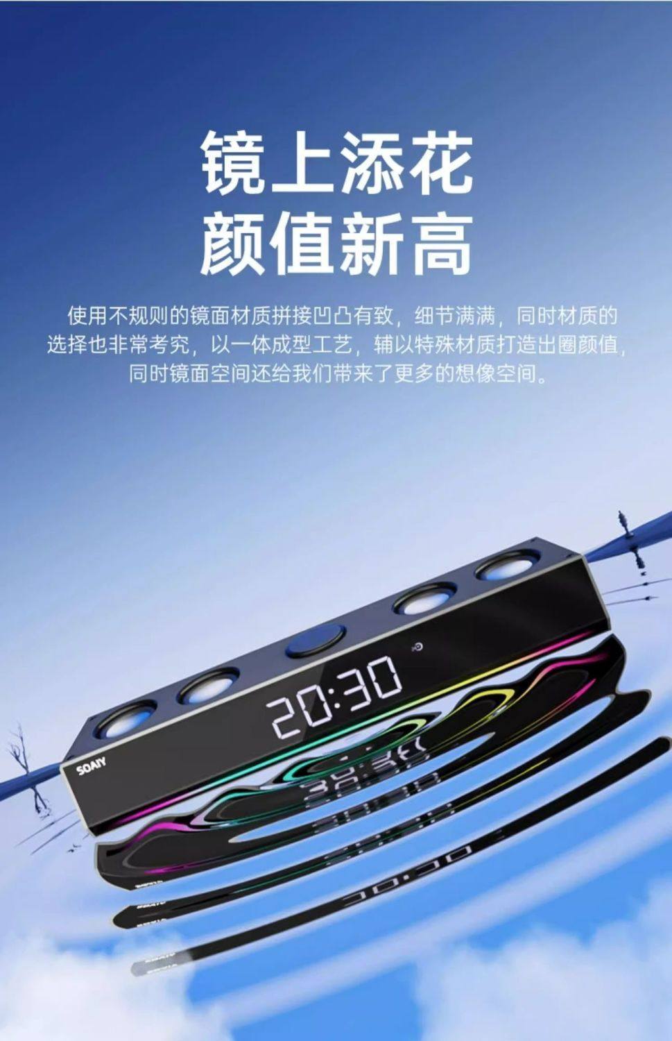 | Color Classification | Contact Customer Service to Receive a Complimentary USB Drive. This Offer Is Not Valid for Individual USB Drive Purchases.,Mirror Black Power Strip with 6 Speakers + Bluetooth + Color Lights,Rechargeable Clock Mirror Black [3600Mah Battery + 6-Unit Speaker + Bluetooth + Tf Card & USB Playback + Color Lights],Rechargeable Clock Mirror Black + 16g USB Drive [3600Mah Battery + 6-Unit Speaker + Bluetooth + Tf Card & USB Drive Playback + Color Lights],Mirror White Power Strip with 6-Outlet Speaker System (Bluetooth Enabled, Color-Changing Lights),Rechargeable Clock Mirror - White [3600Mah Battery + 6-Unit Speaker + Bluetooth + Tf Card/Usb Playback + Color Lights],Rechargeable Clock Mirror White + 16g USB Drive [3600Mah Battery + 6-Unit Speaker + Bluetooth + Tf Card & USB Drive Playback + Color Lights],Large Tv + Computer Companion Speaker [8 Units + Length Approximately 1m],Large Tv + Computer Companion Speaker + Subwoofer Package |