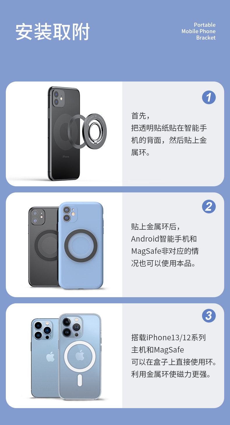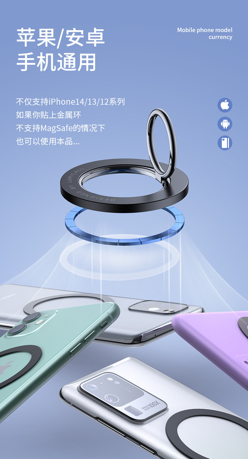 Magnetic Phone Ring Holder with Magsafe, 360-Degree Rotation, Suitable for Watching Shows, Compatible with Apple and Android